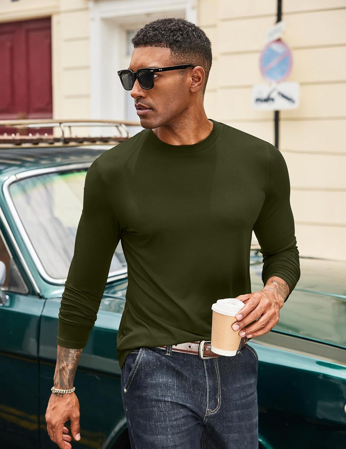 Get up to 70% off on COOFANDY Mens Long Sleeve Tee Shirts Stretch Crew Neck Thermal Shirts Casual T Shirts for Men(Dark Army Green) styles during our end-of-season clearance event.