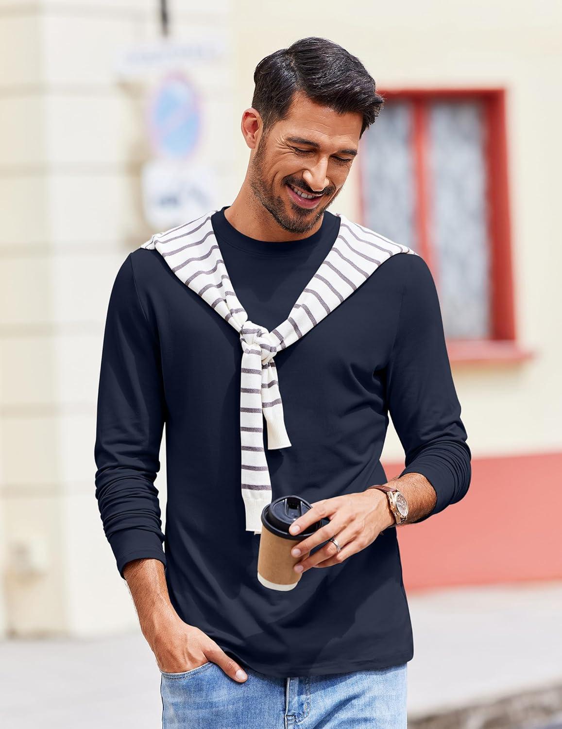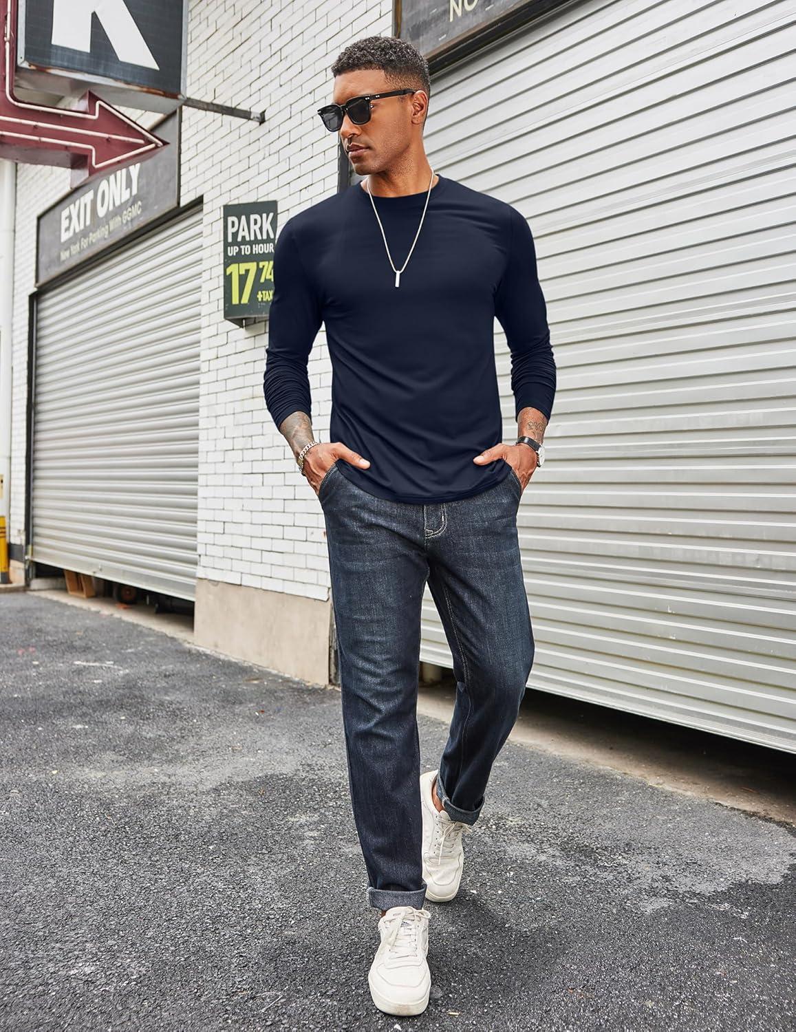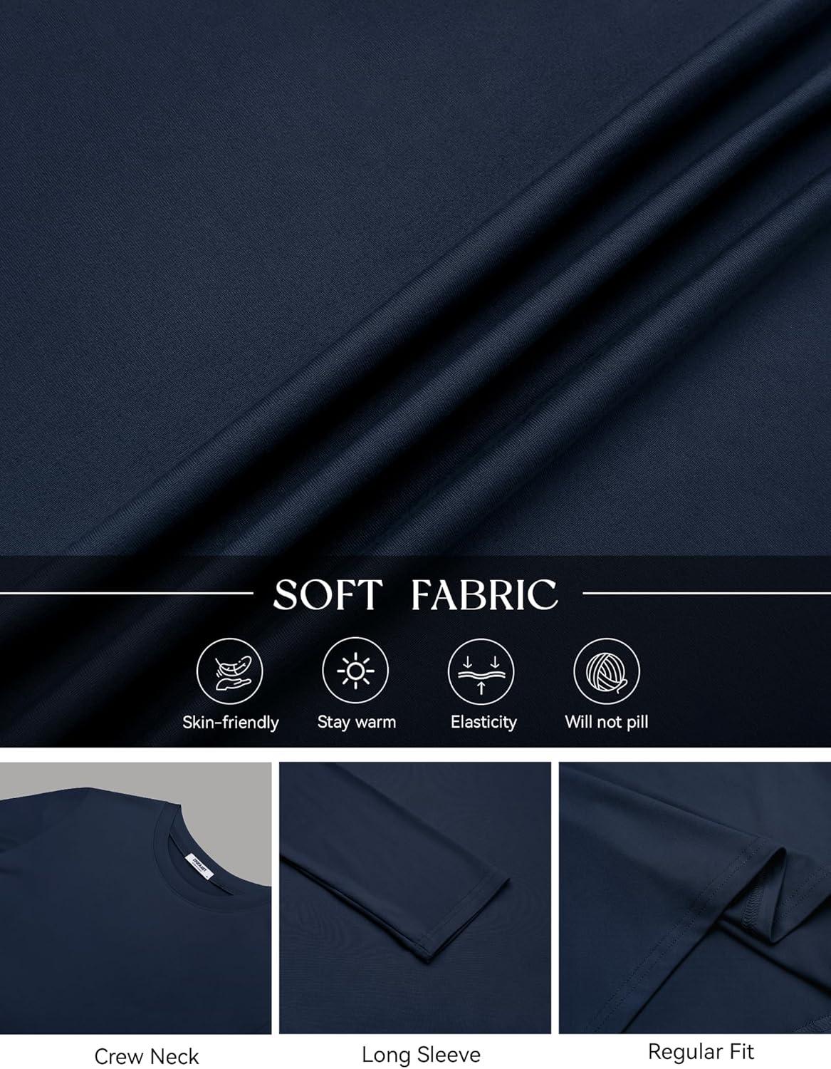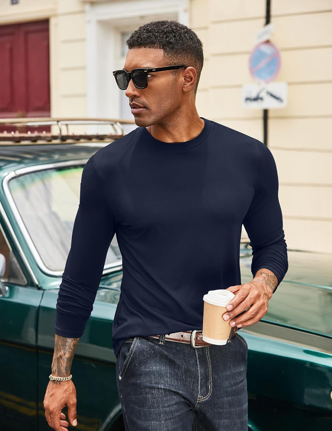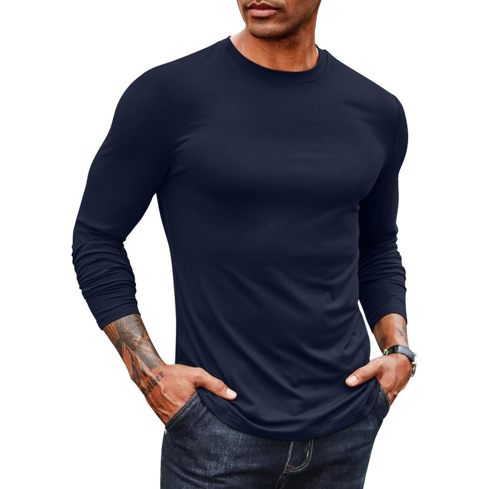 COOFANDY Mens Long Sleeve Tee Shirts Stretch Crew Neck Thermal Shirts Casual T Shirts for Men(Dark Blue)