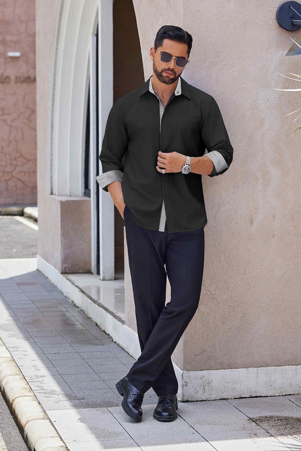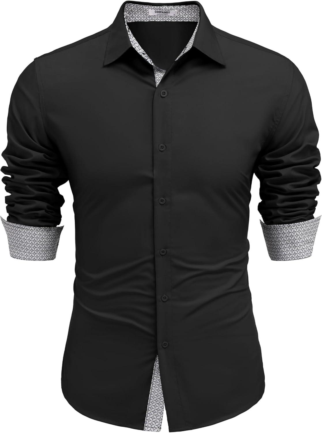 COOFANDY Men’s Long Sleeve Wrinkle Free Dress Shirts Inner Contrast Business Casual Button Down Shirt(White/Black)