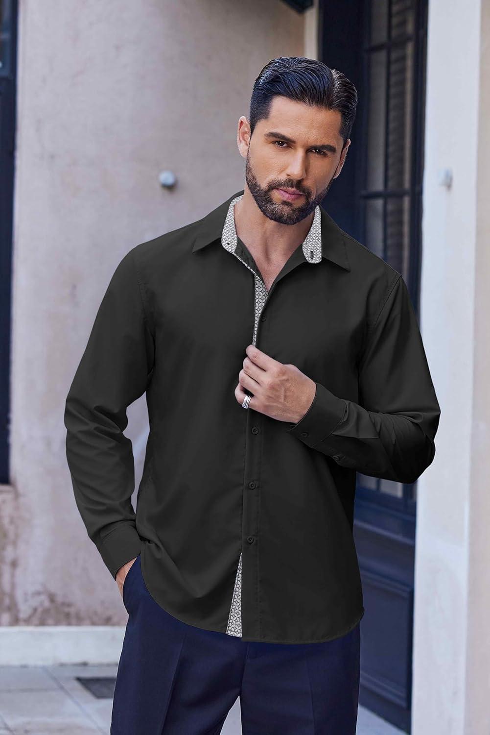COOFANDY Men's Long Sleeve Wrinkle Free Dress Shirts Inner Contrast Business Casual Button Down Shirt(Black/Gold)