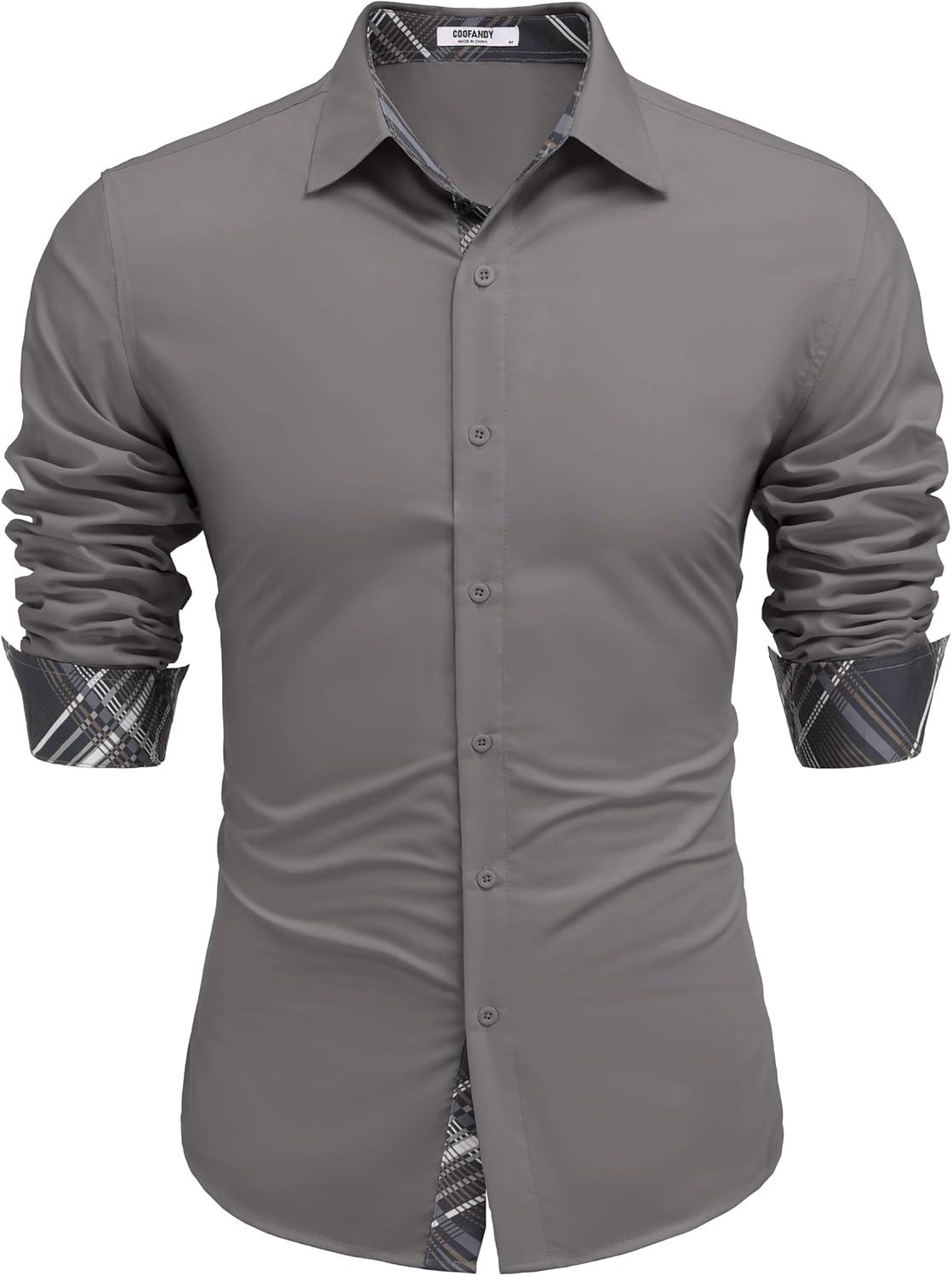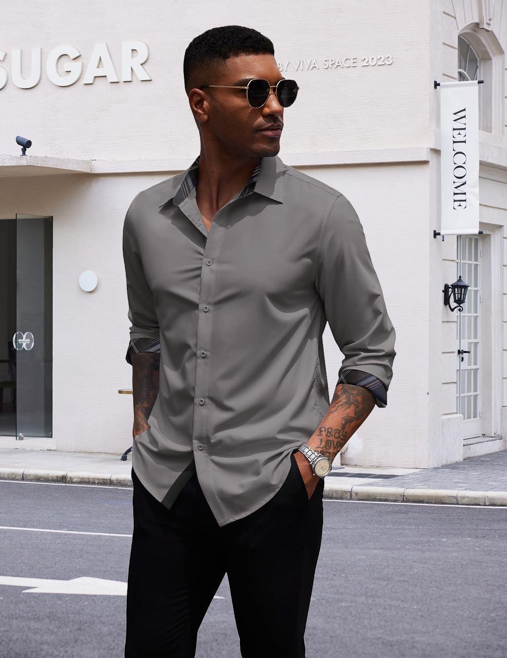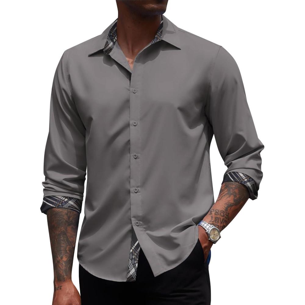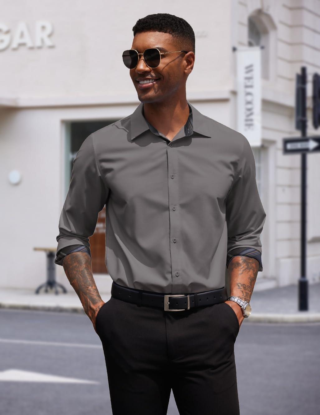 COOFANDY Men's Long Sleeve Wrinkle Free Dress Shirts Inner Contrast Business Casual Button Down Shirt(Dark Grey)