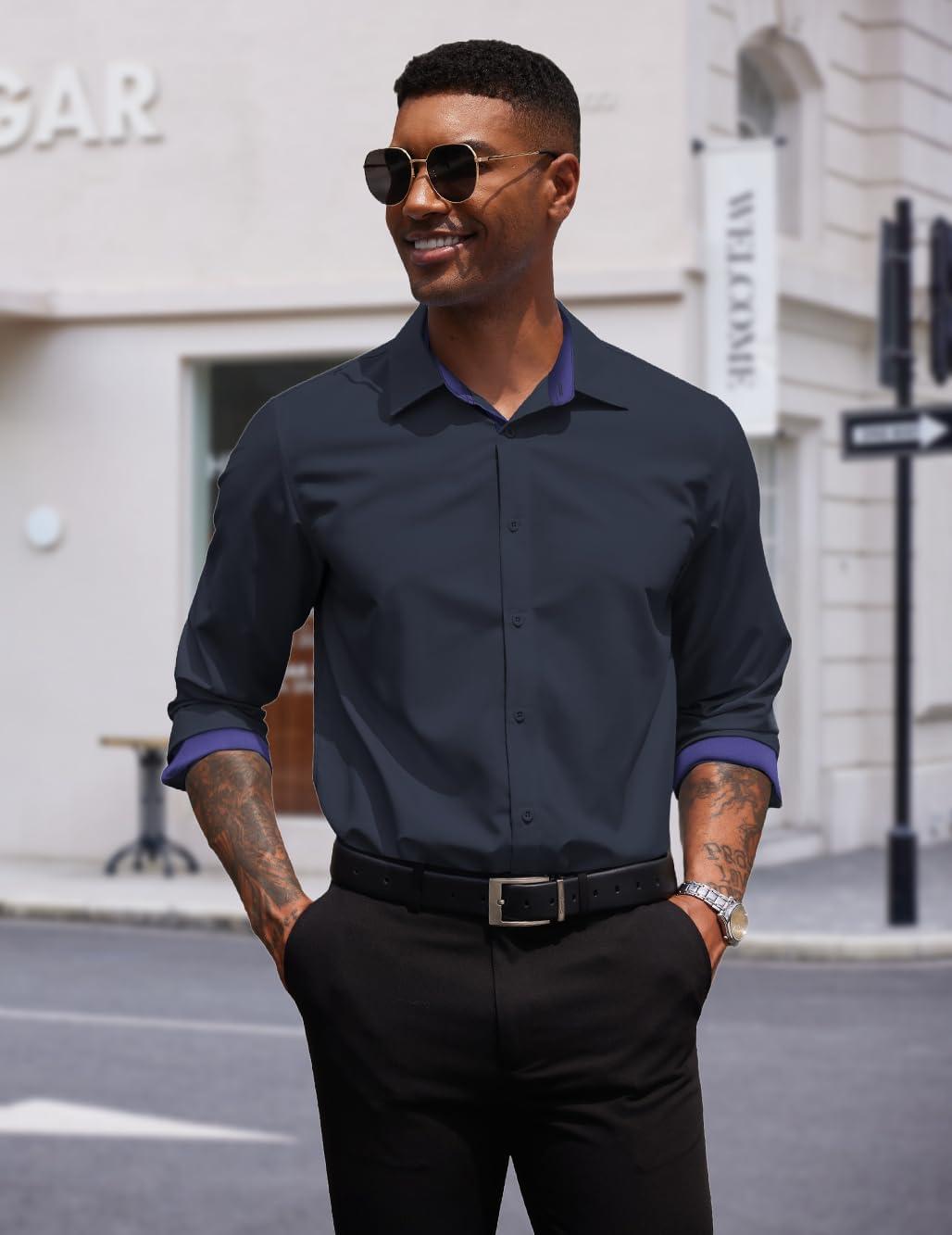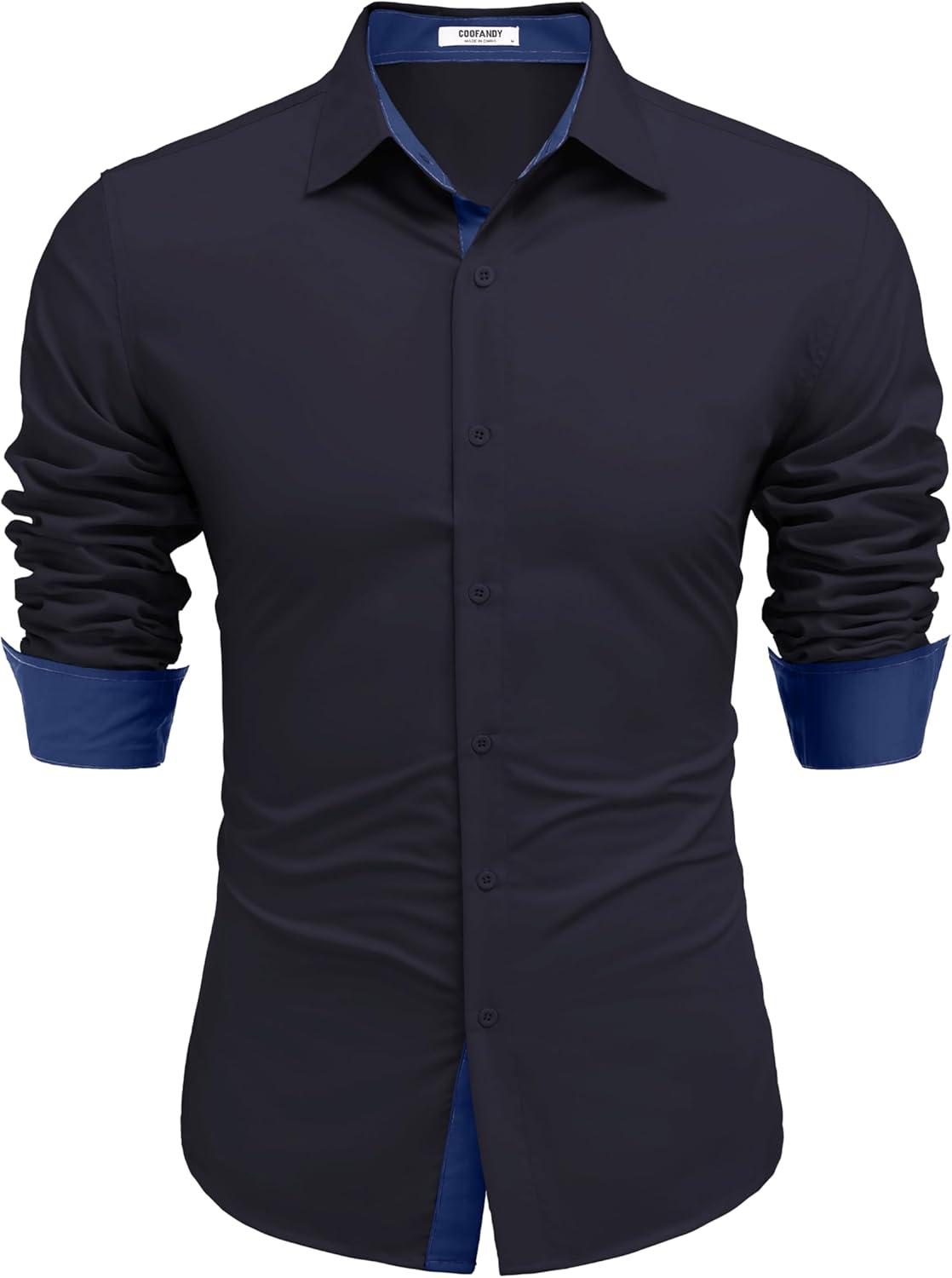 COOFANDY Men’s Long Sleeve Wrinkle Free Dress Shirts Inner Contrast Business Casual Button Down Shirt(Black)