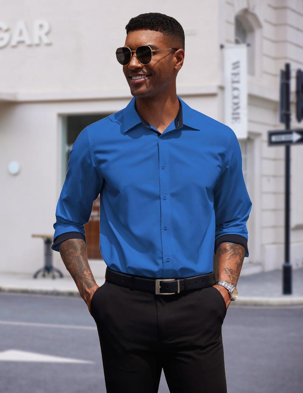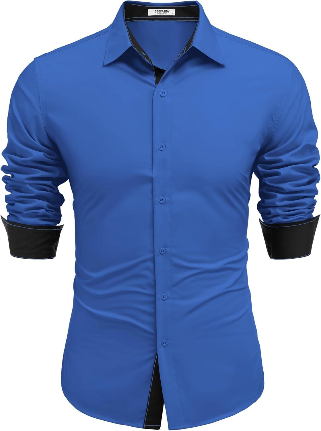 COOFANDY Men's Long Sleeve Wrinkle Free Dress Shirts Inner Contrast Business Casual Button Down Shirt(Royal Blue)