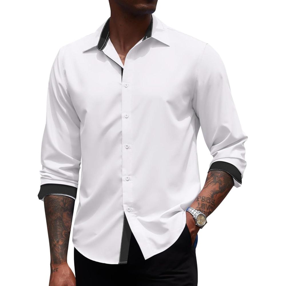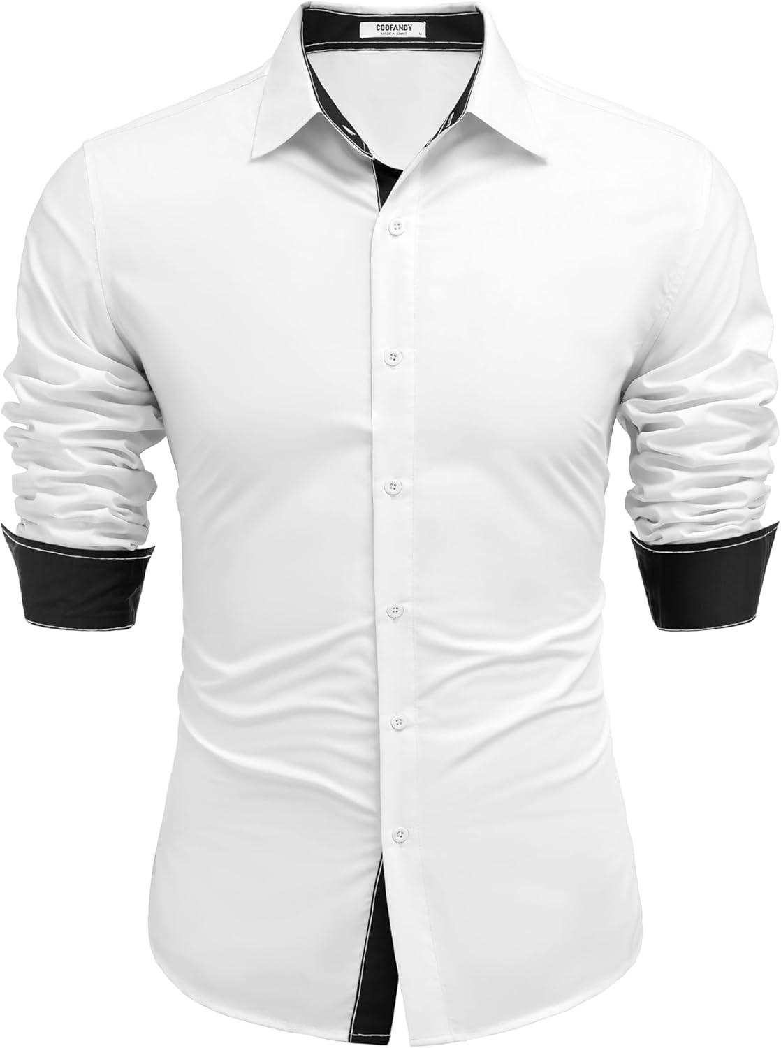 COOFANDY Men's Long Sleeve Wrinkle Free Dress Shirts Inner Contrast Business Casual Button Down Shirt(White-black)