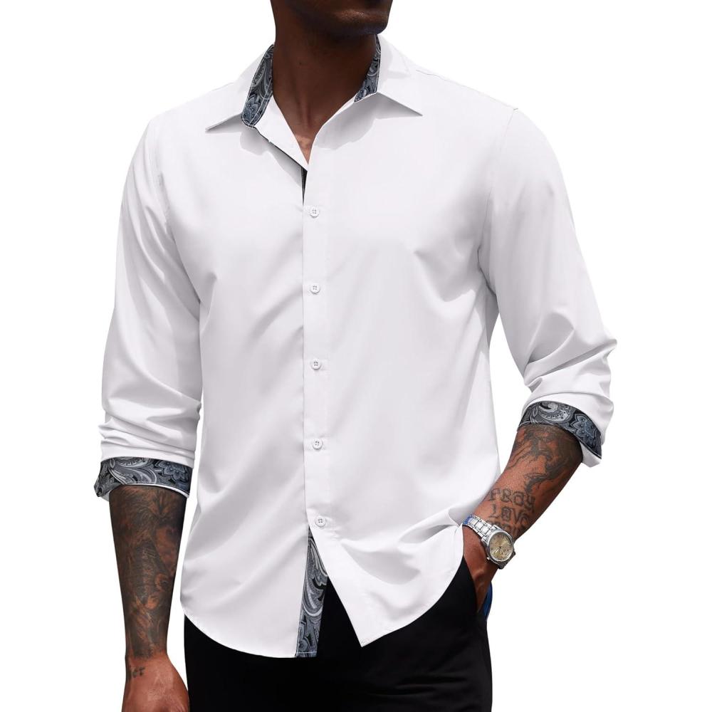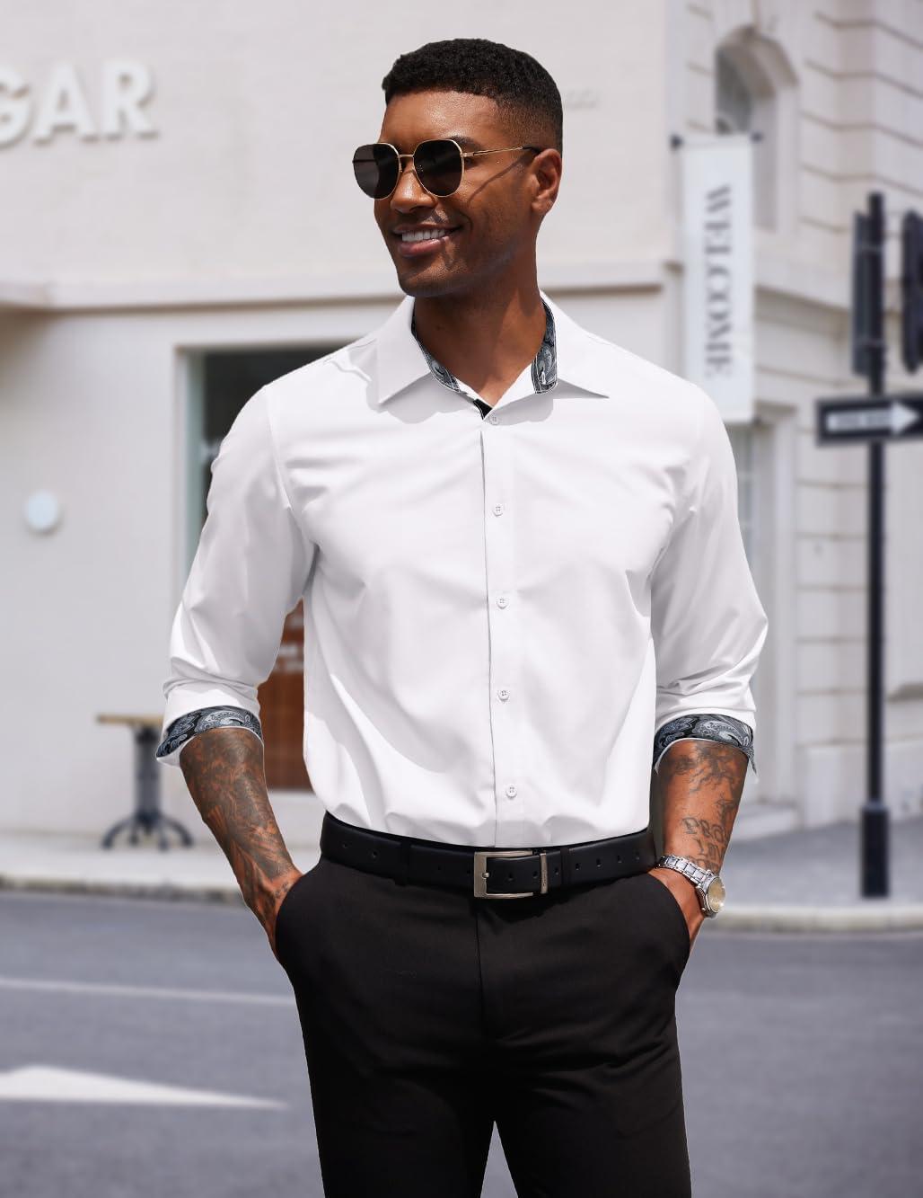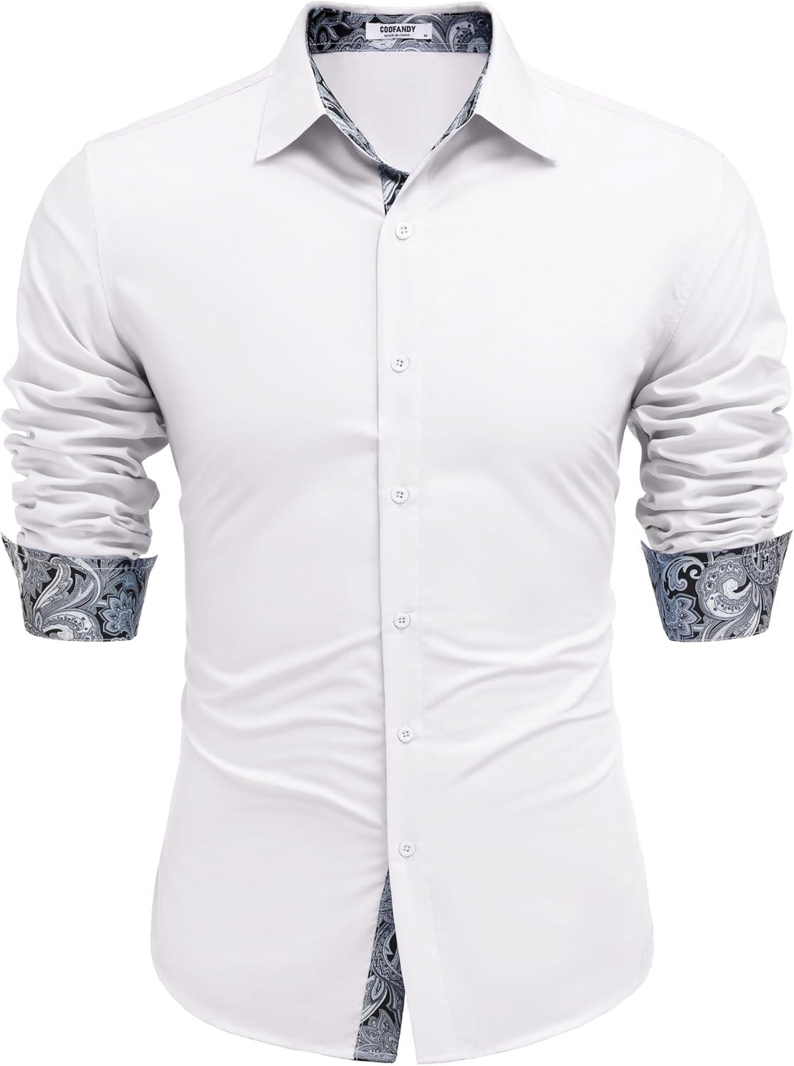 COOFANDY Men's Long Sleeve Wrinkle Free Dress Shirts Inner Contrast Business Casual Button Down Shirt(White)