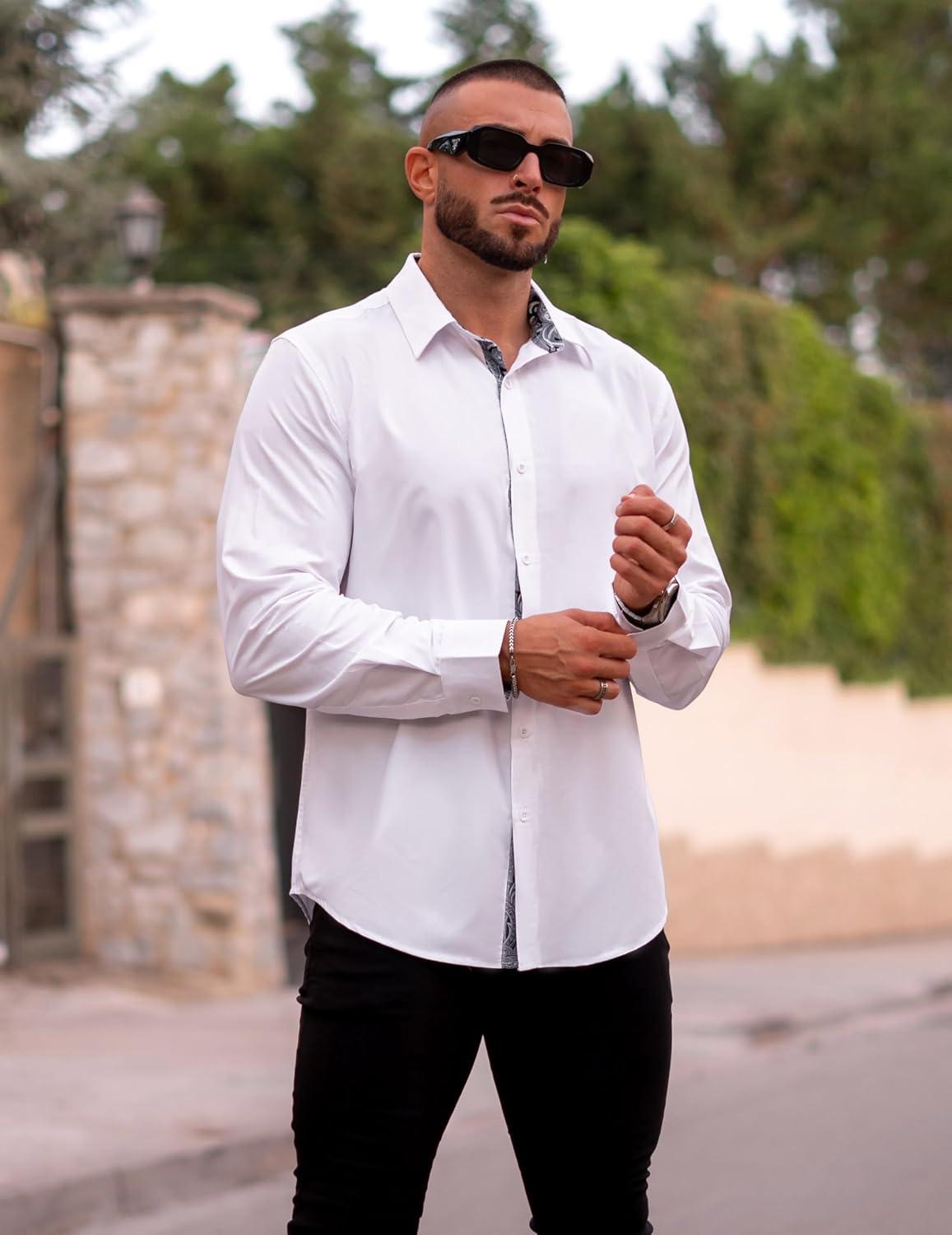 COOFANDY Men’s Long Sleeve Wrinkle Free Dress Shirts Inner Contrast Business Casual Button Down Shirt(White)