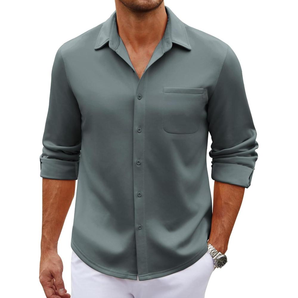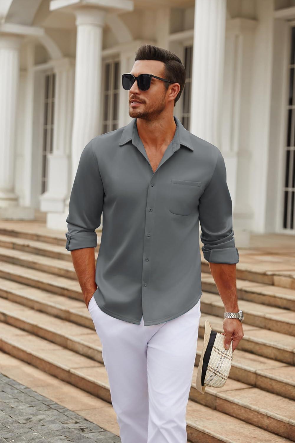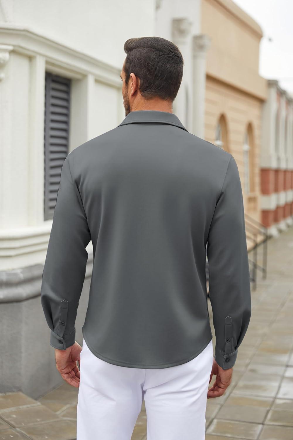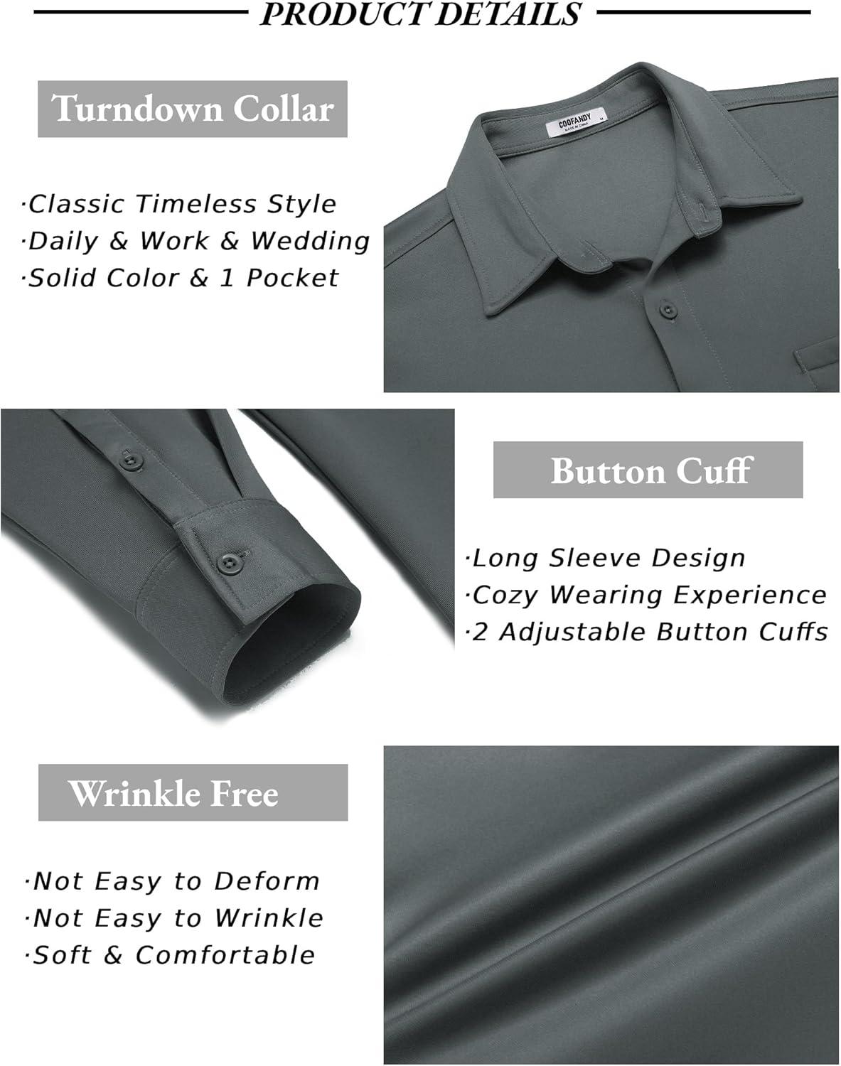 COOFANDY Men's Long Sleeve Wrinkle Free Shirt Casual Button Down Shirts Stretch Dress Shirt with Pocket(Dark Grey)