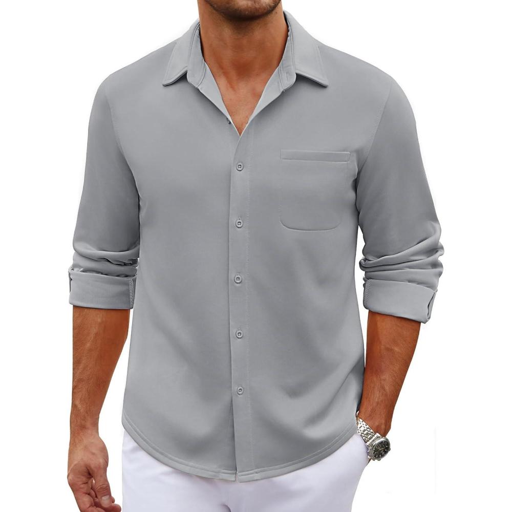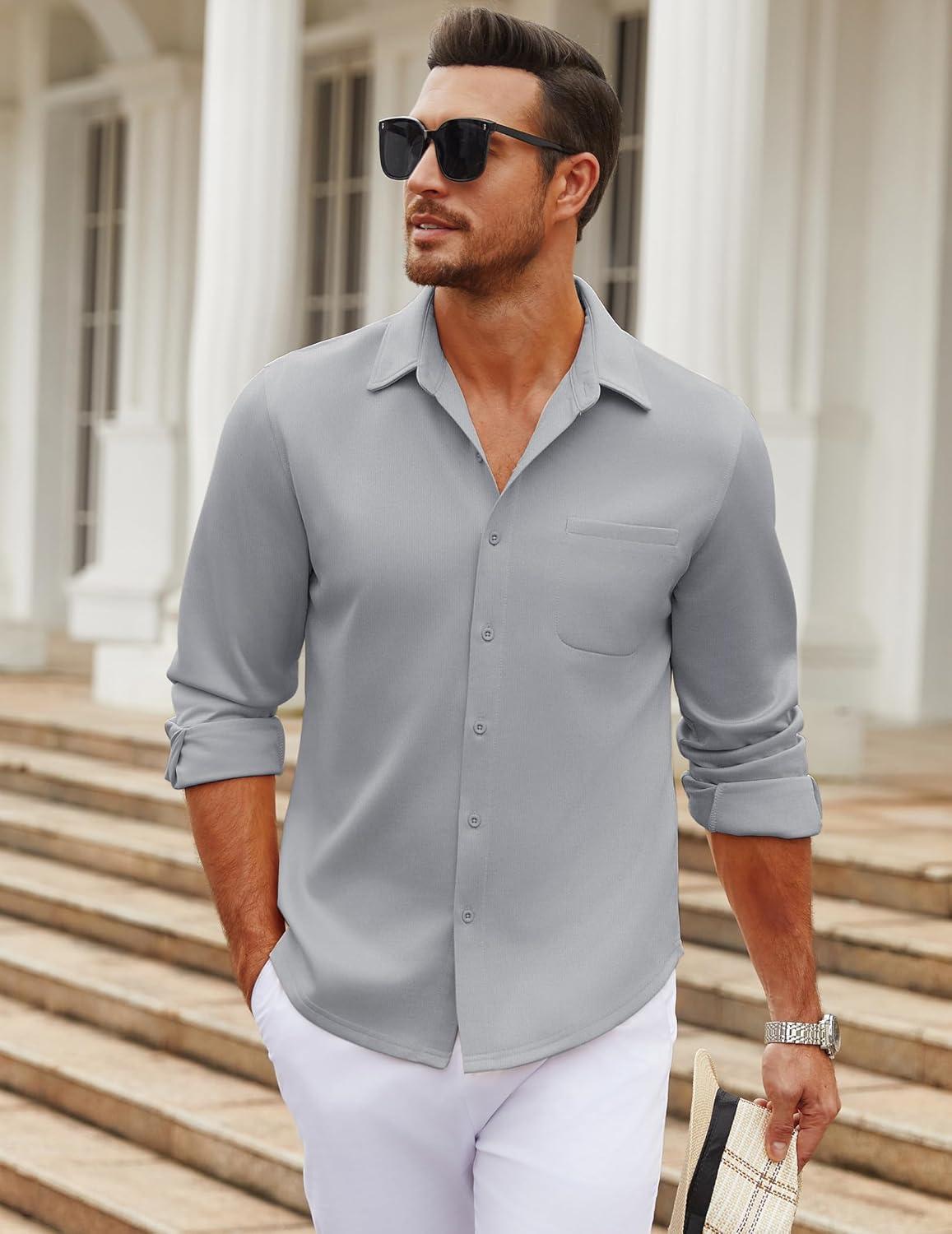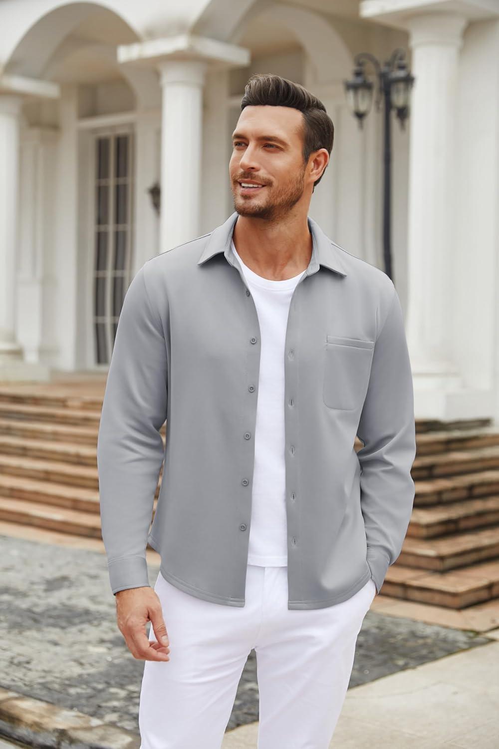 COOFANDY Men's Long Sleeve Wrinkle Free Shirt Casual Button Down Shirts Stretch Dress Shirt with Pocket(Light Grey)