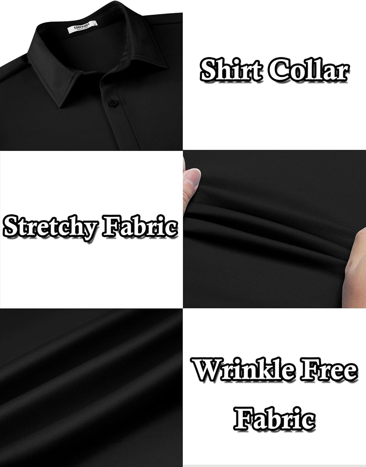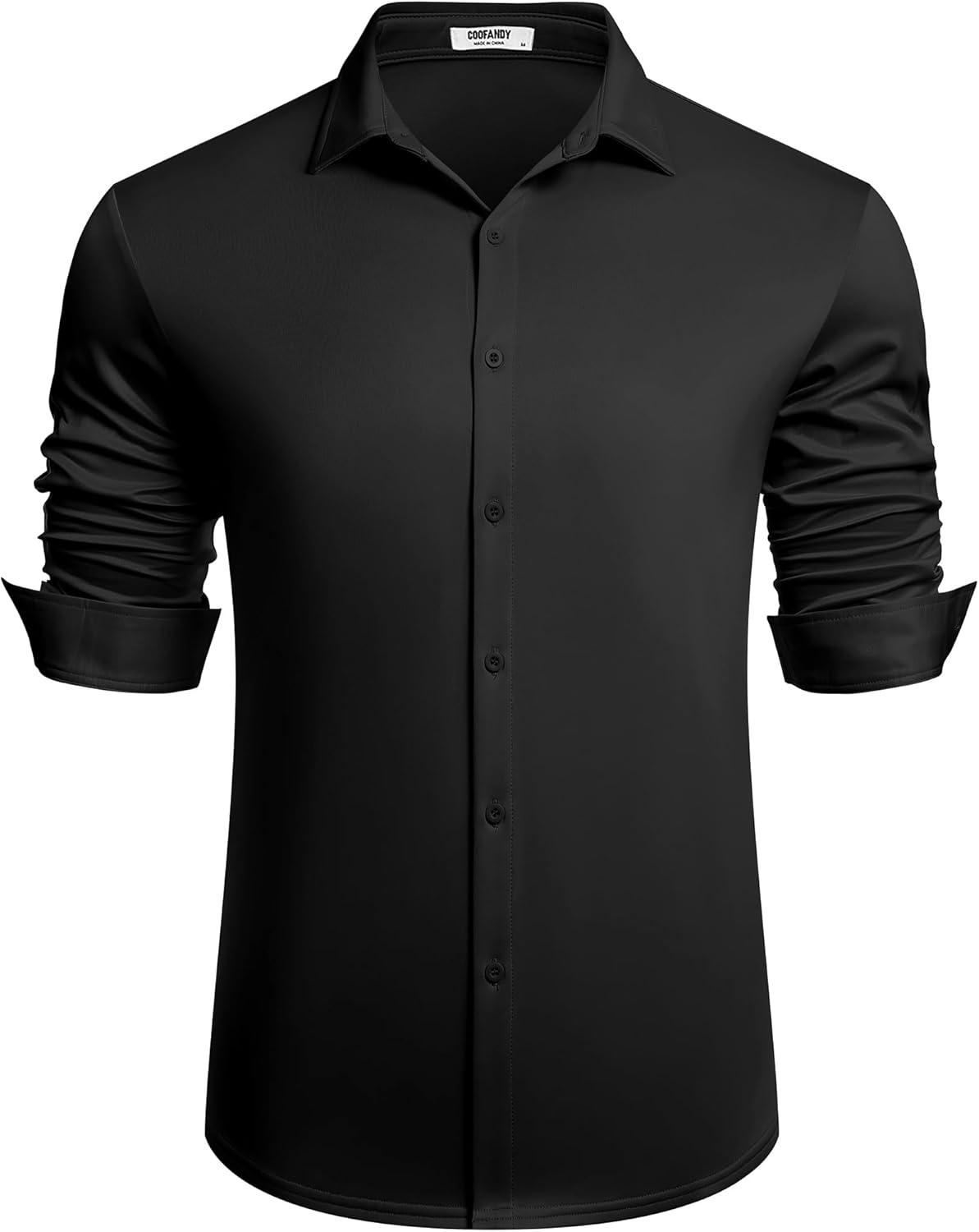 COOFANDY Men's Long Sleeve Wrinkle Free Shirts Button Down Casual Stretch Dress Shirt(Black)