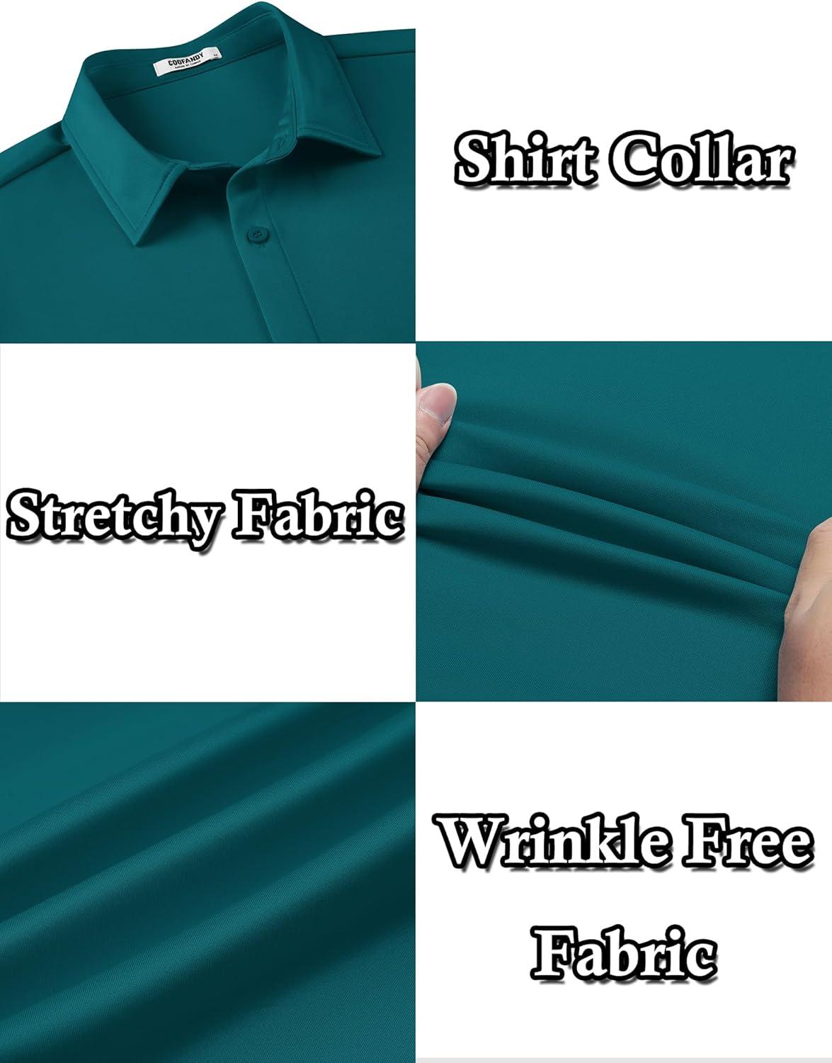 COOFANDY Men’s Long Sleeve Wrinkle Free Shirts Button Down Casual Stretch Dress Shirt(Lake Blue)
