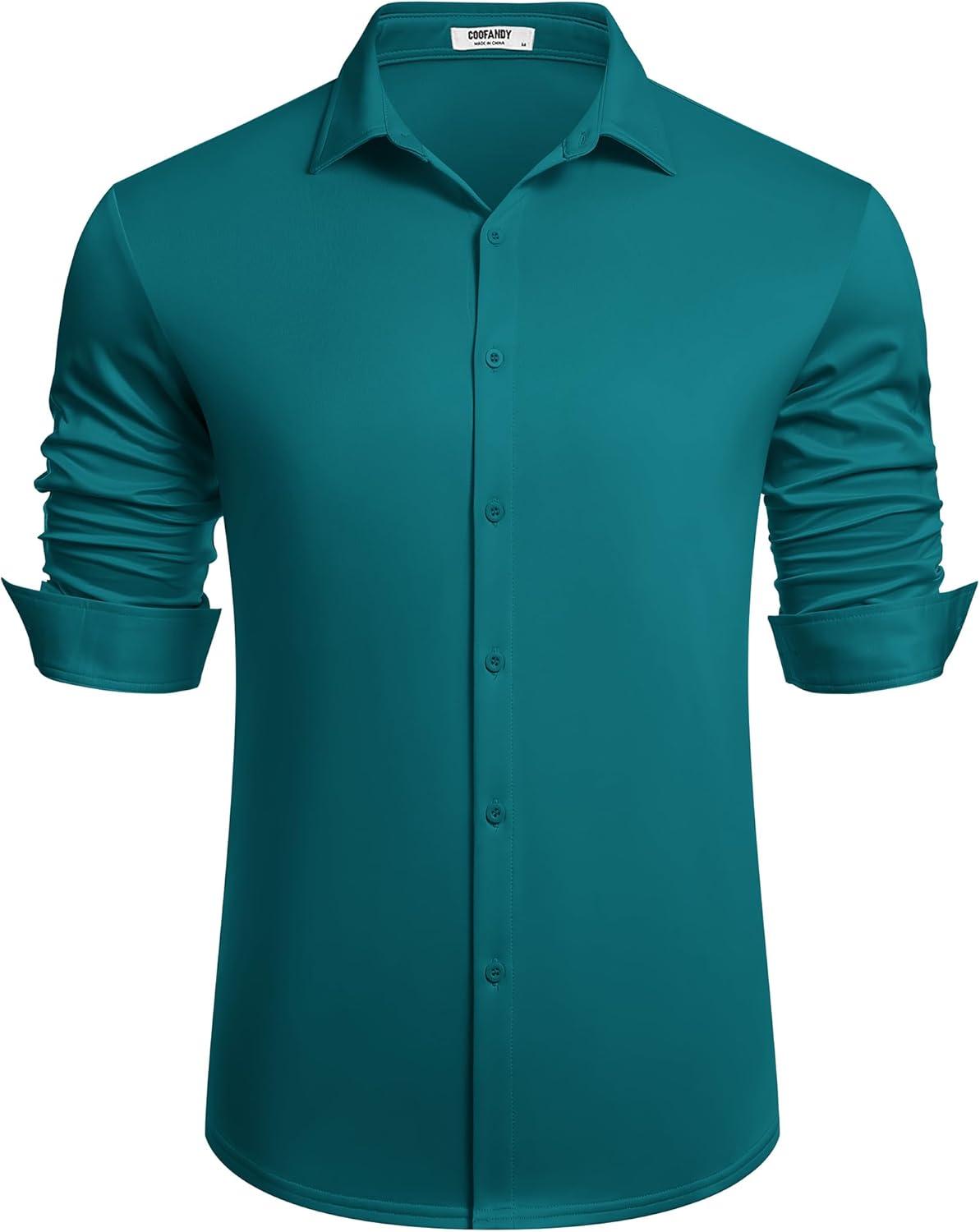 COOFANDY Men's Long Sleeve Wrinkle Free Shirts Button Down Casual Stretch Dress Shirt(Lake Blue)