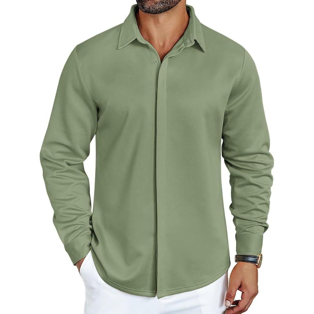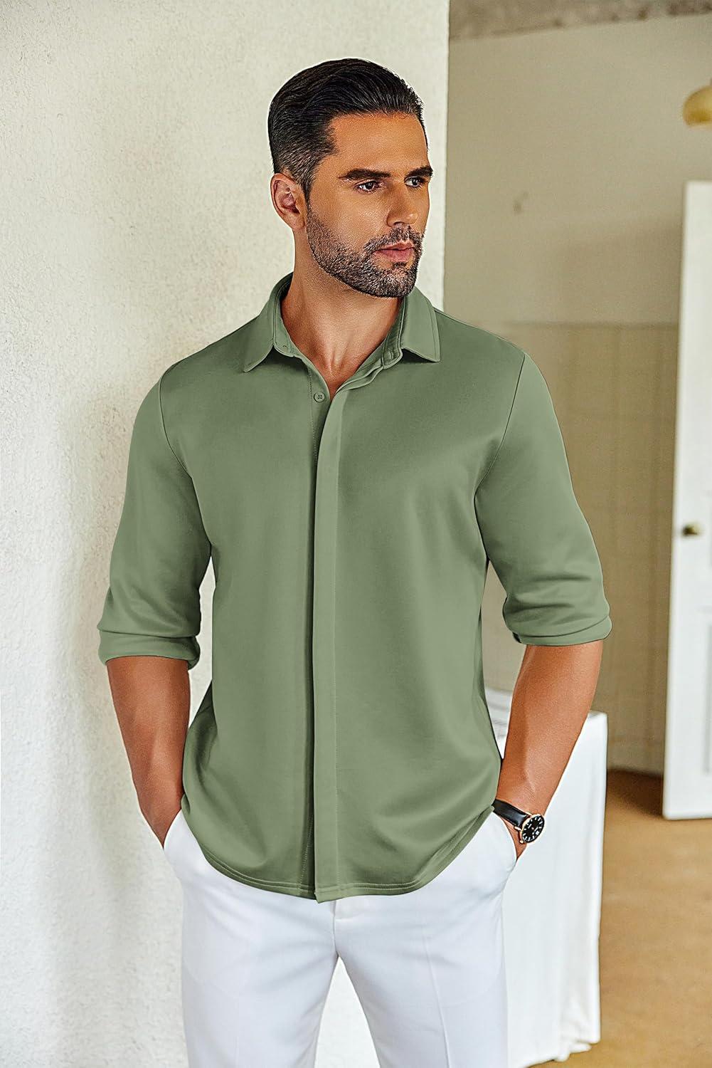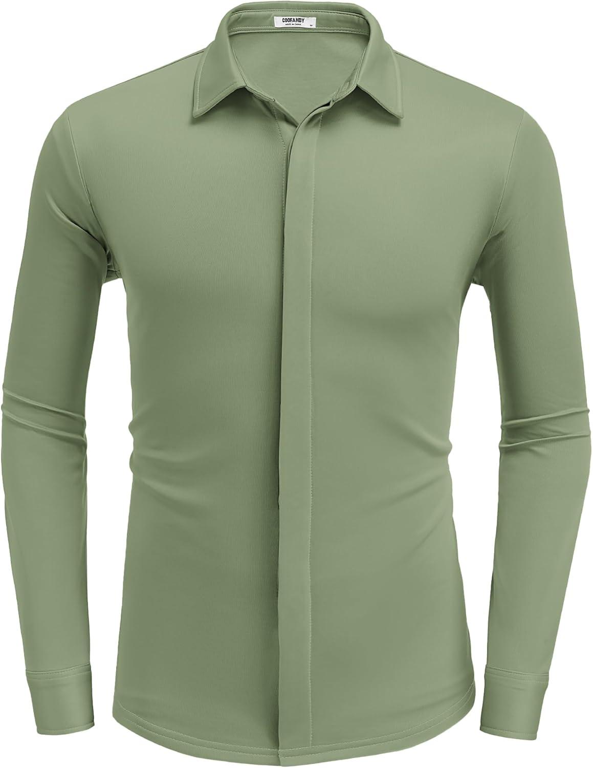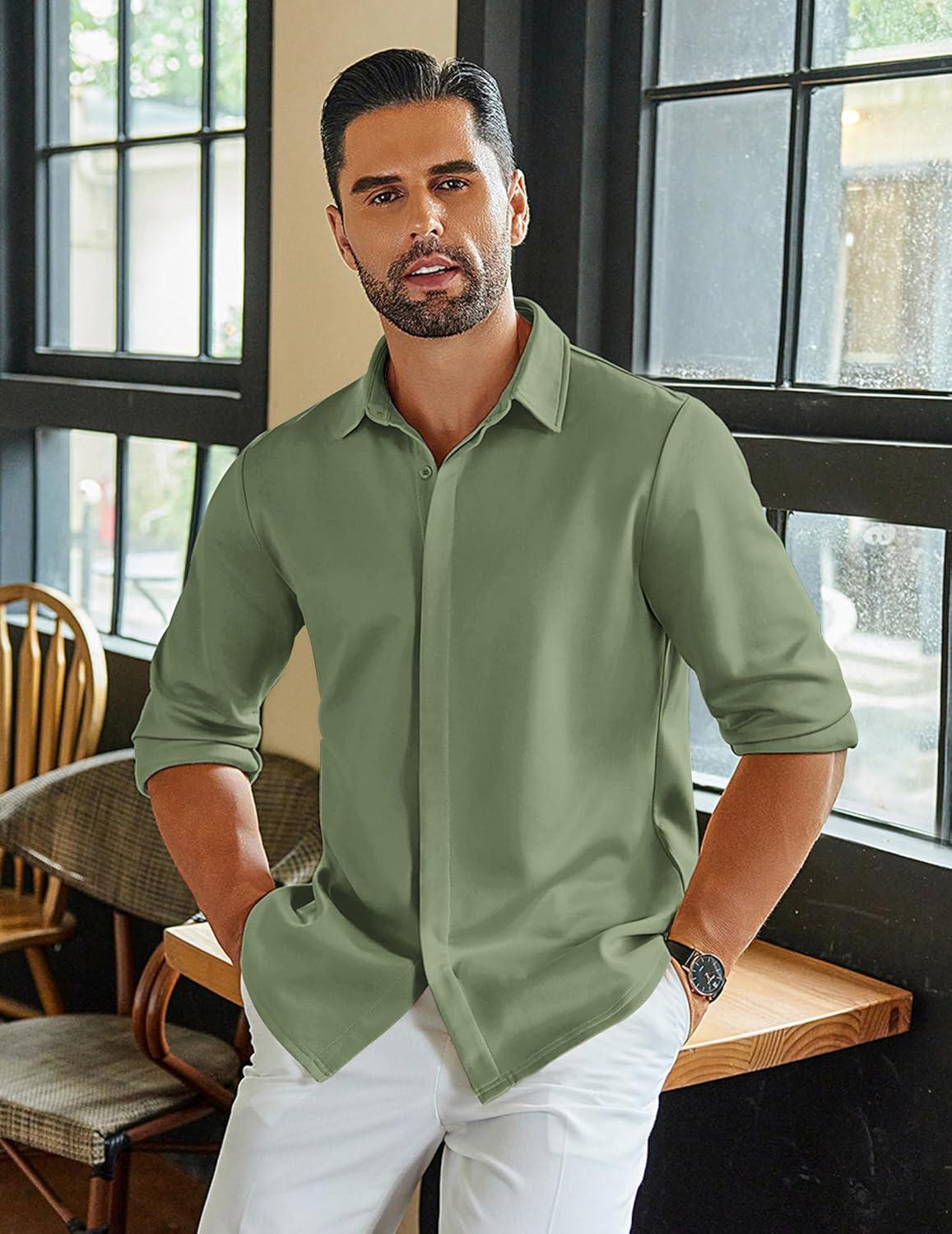 COOFANDY Mens Long Sleeve Wrinkle Free Shirts Casual Button Down Shirt Stretch Dress Shirt(Moon Green)