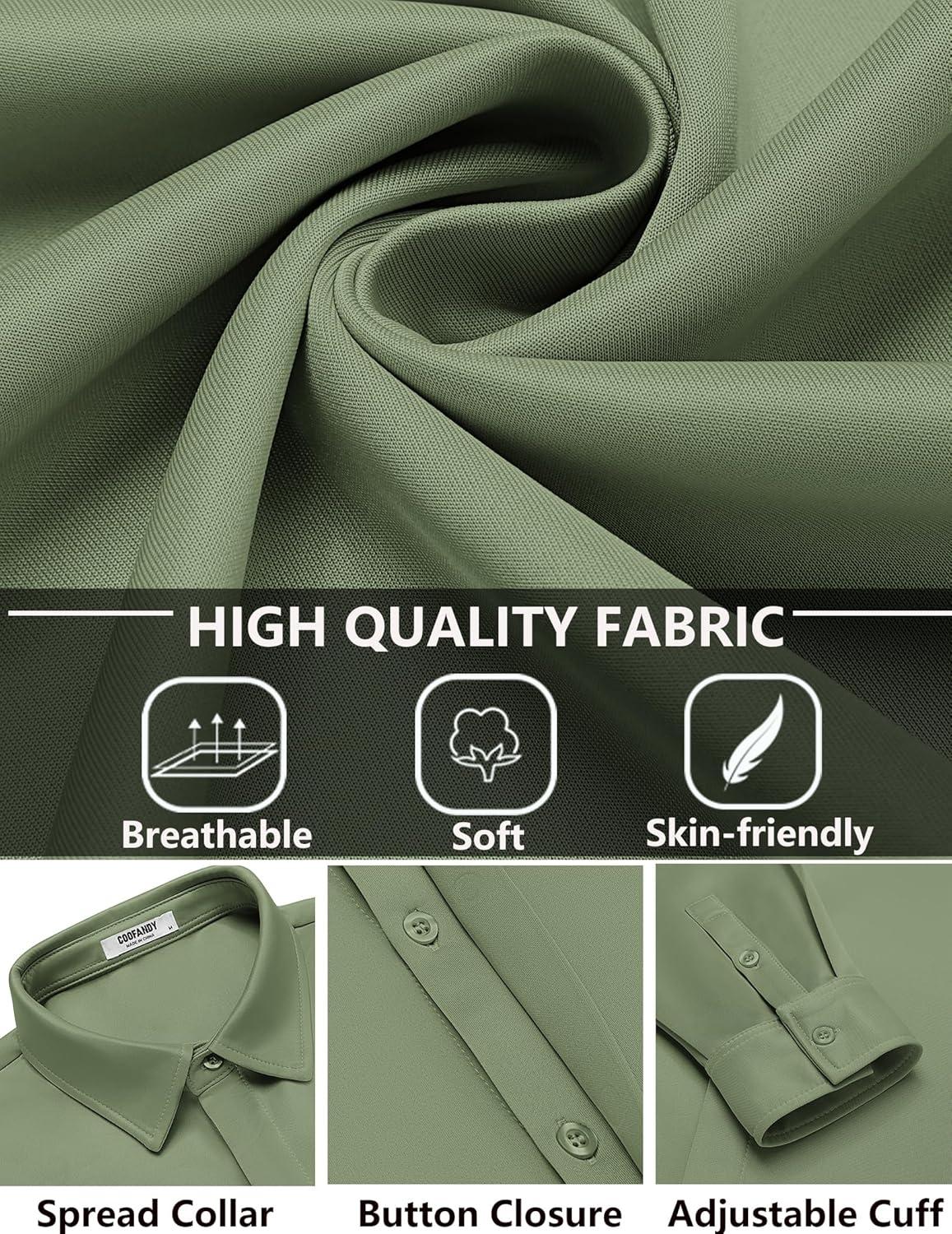 imageCOOFANDY Mens Long Sleeve Wrinkle Free Shirts Casual Button Down Shirt Stretch Dress ShirtMoon Green