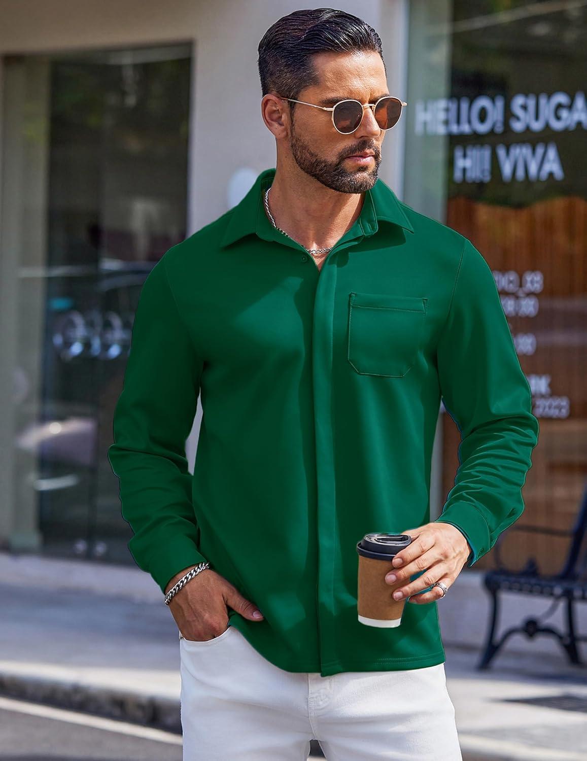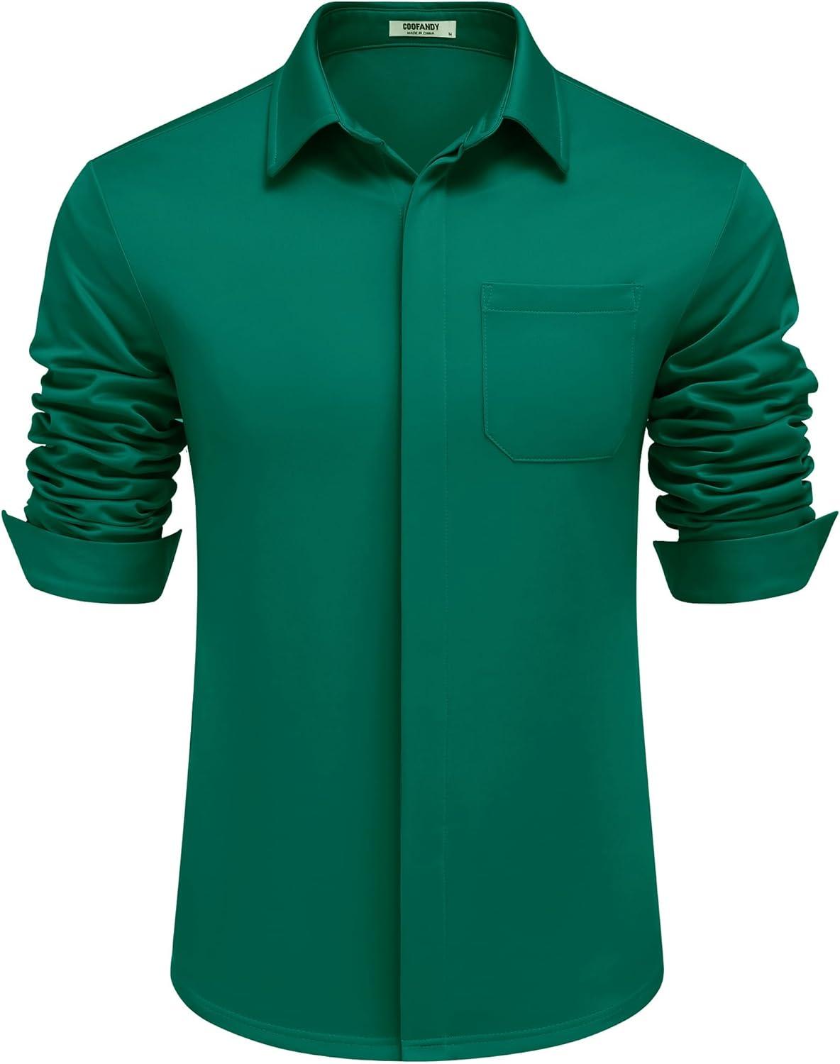 COOFANDY Men’s Long Sleeve Wrinkle Free Shirts Casual Button Down Shirts Untucked Dress Shirt(Green)
