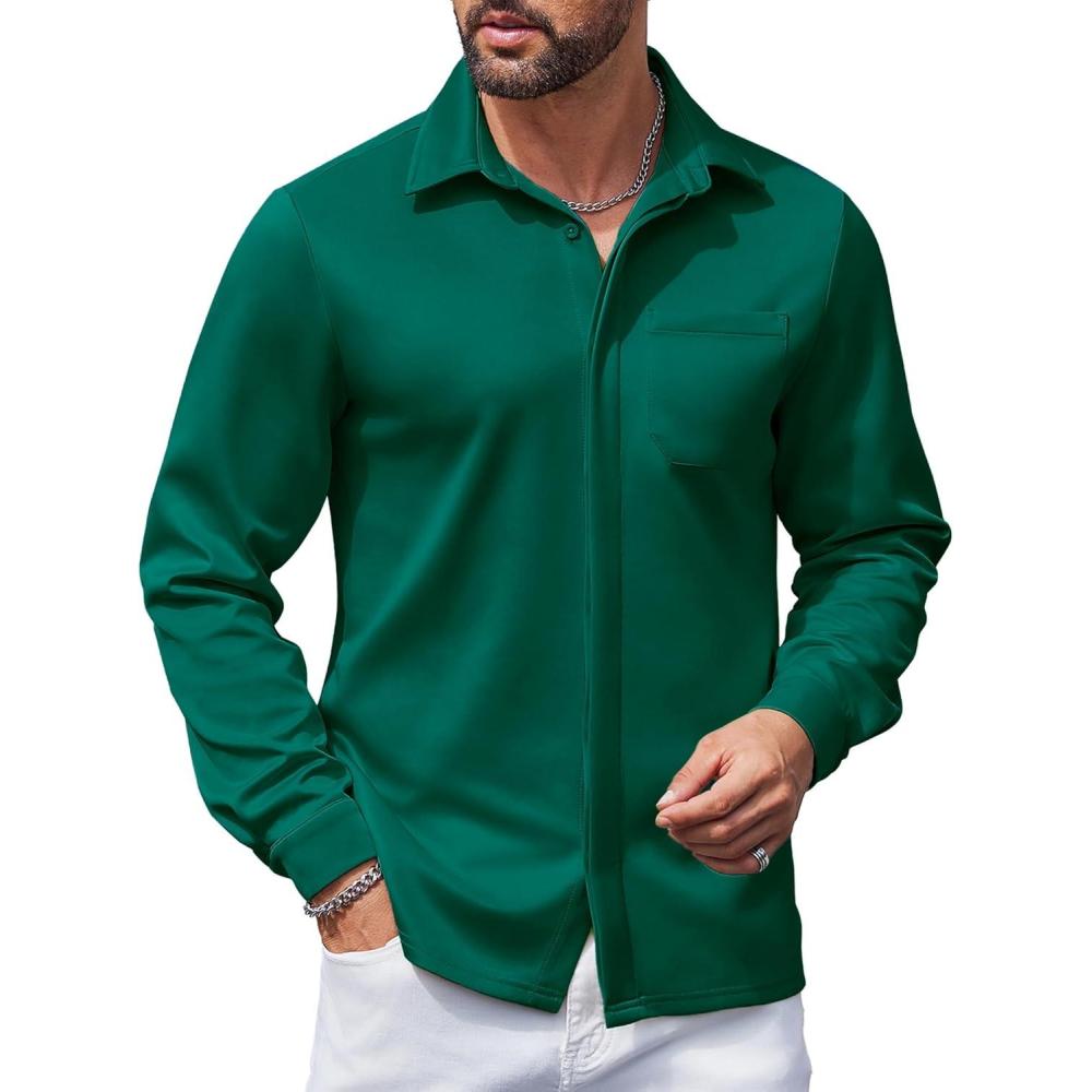 COOFANDY Men's Long Sleeve Wrinkle Free Shirts Casual Button Down Shirts Untucked Dress Shirt(Green)