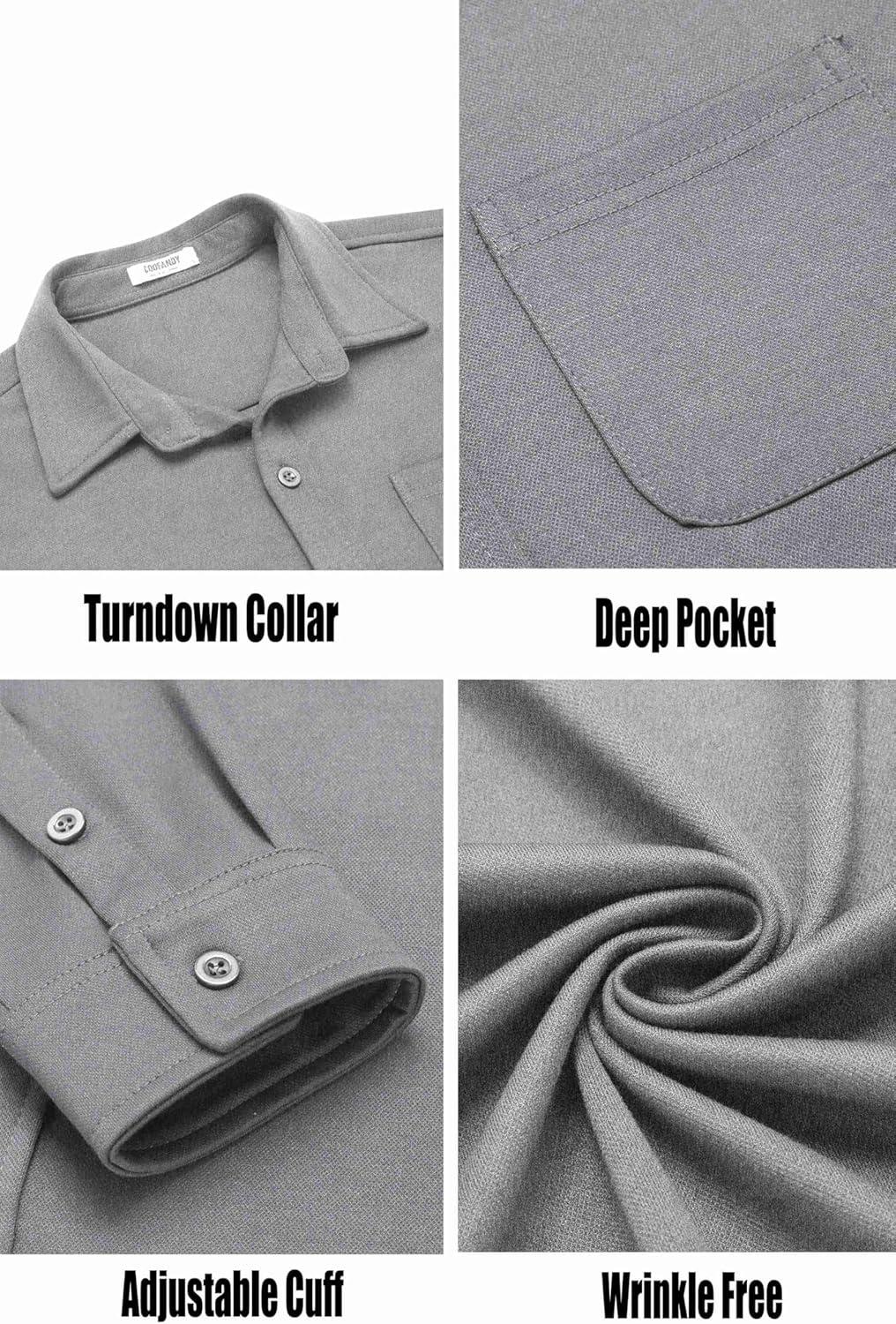 imageCOOFANDY Mens Long Sleeve Wrinkle Free Shirts Casual Button Down Stretch Dress Shirt with PocketLight Grey