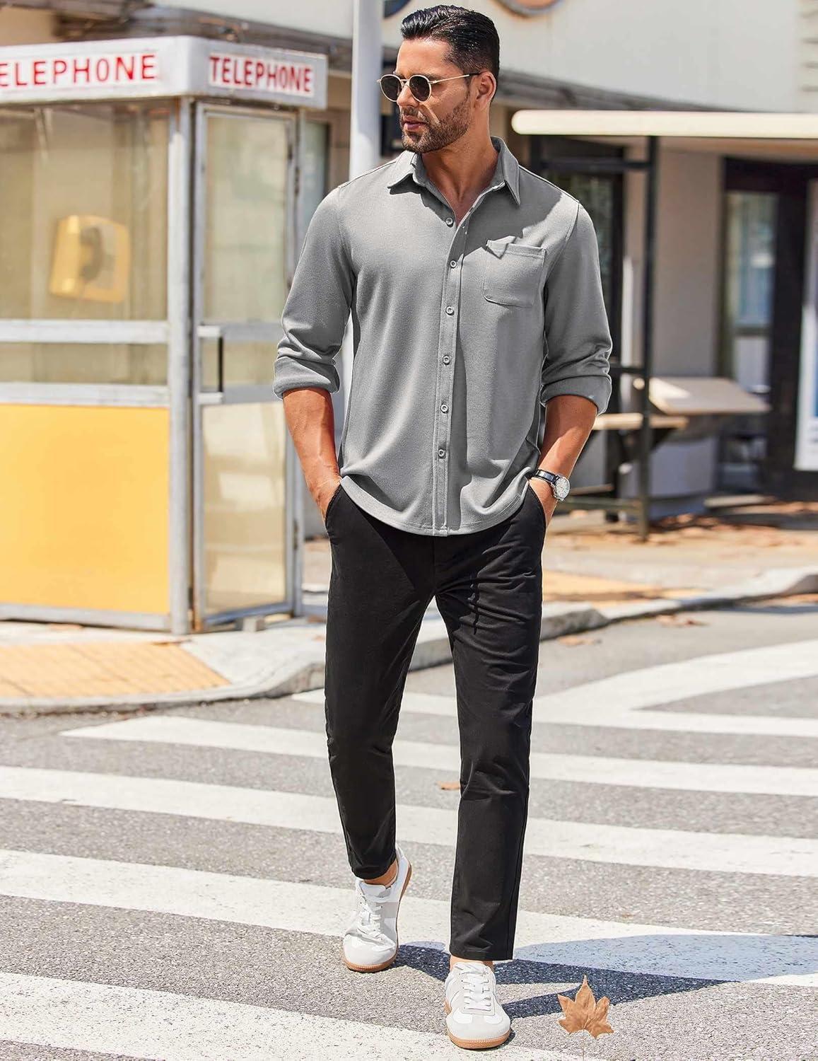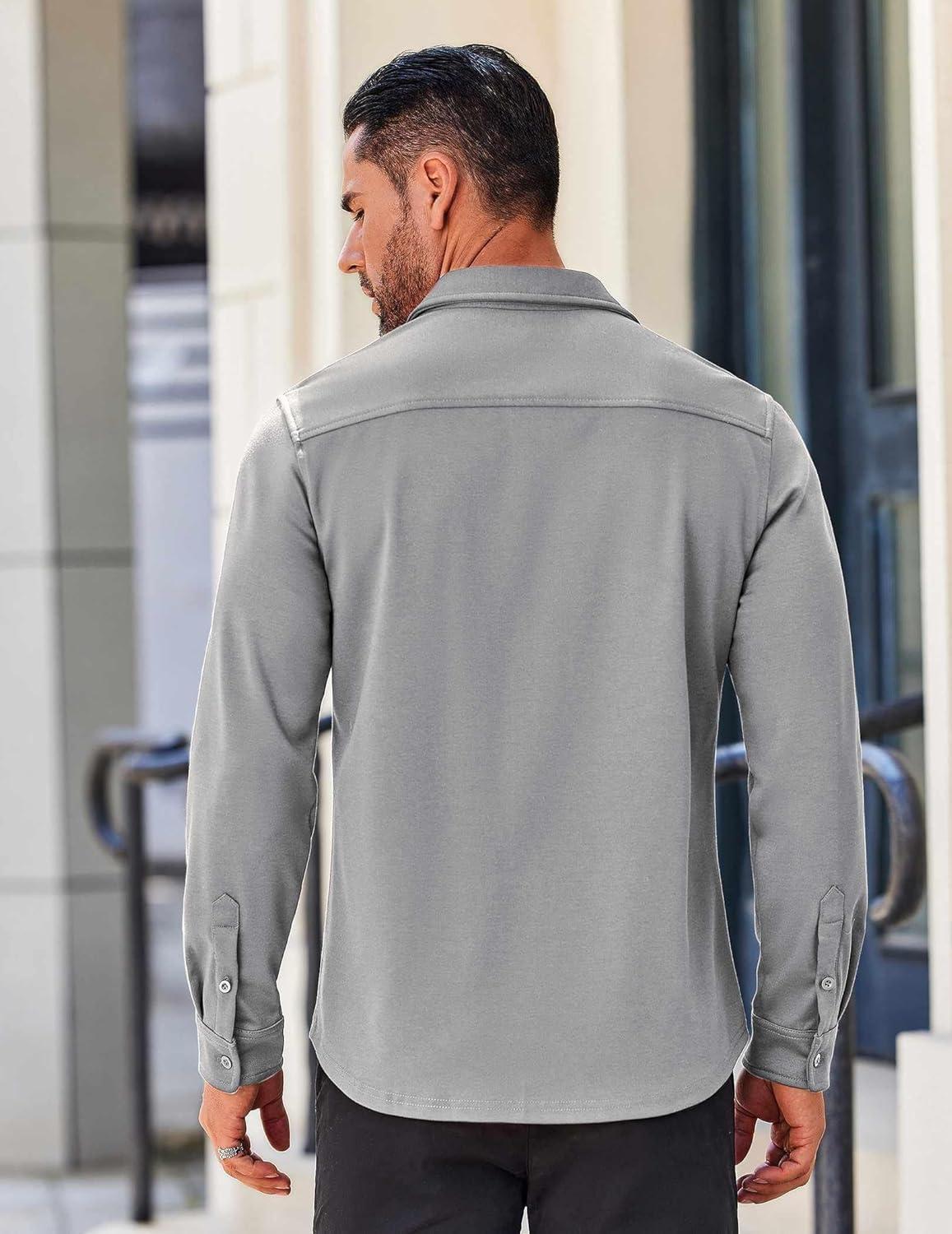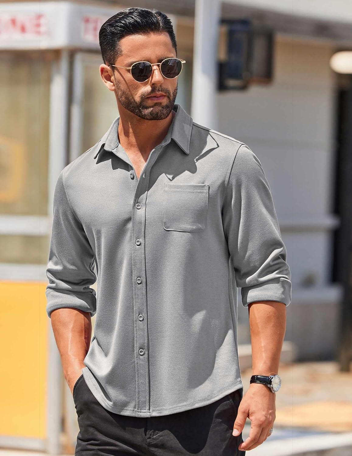 COOFANDY Mens Long Sleeve Wrinkle Free Shirts Casual Button Down Stretch Dress Shirt with Pocket(Light Grey)