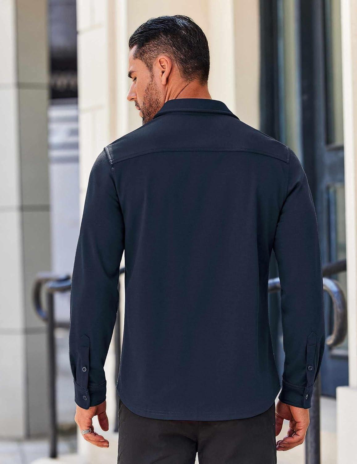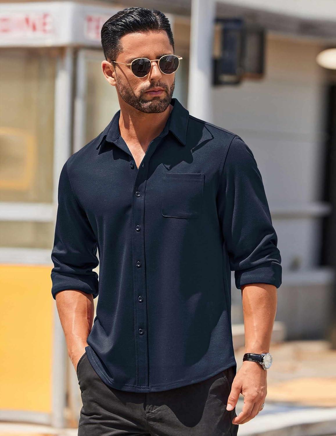 COOFANDY Mens Long Sleeve Wrinkle Free Shirts Casual Button Down Stretch Dress Shirt with Pocket(Navy Blue)