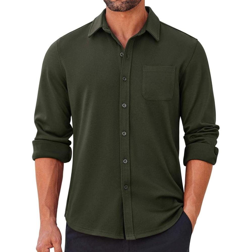 Save big on COOFANDY Mens Long Sleeve Wrinkle Free Shirts Casual Button Down Stretch Dress Shirt with Pocket(Olive Green) and accessories during our BOGO sale. Buy one, get one 50% off!