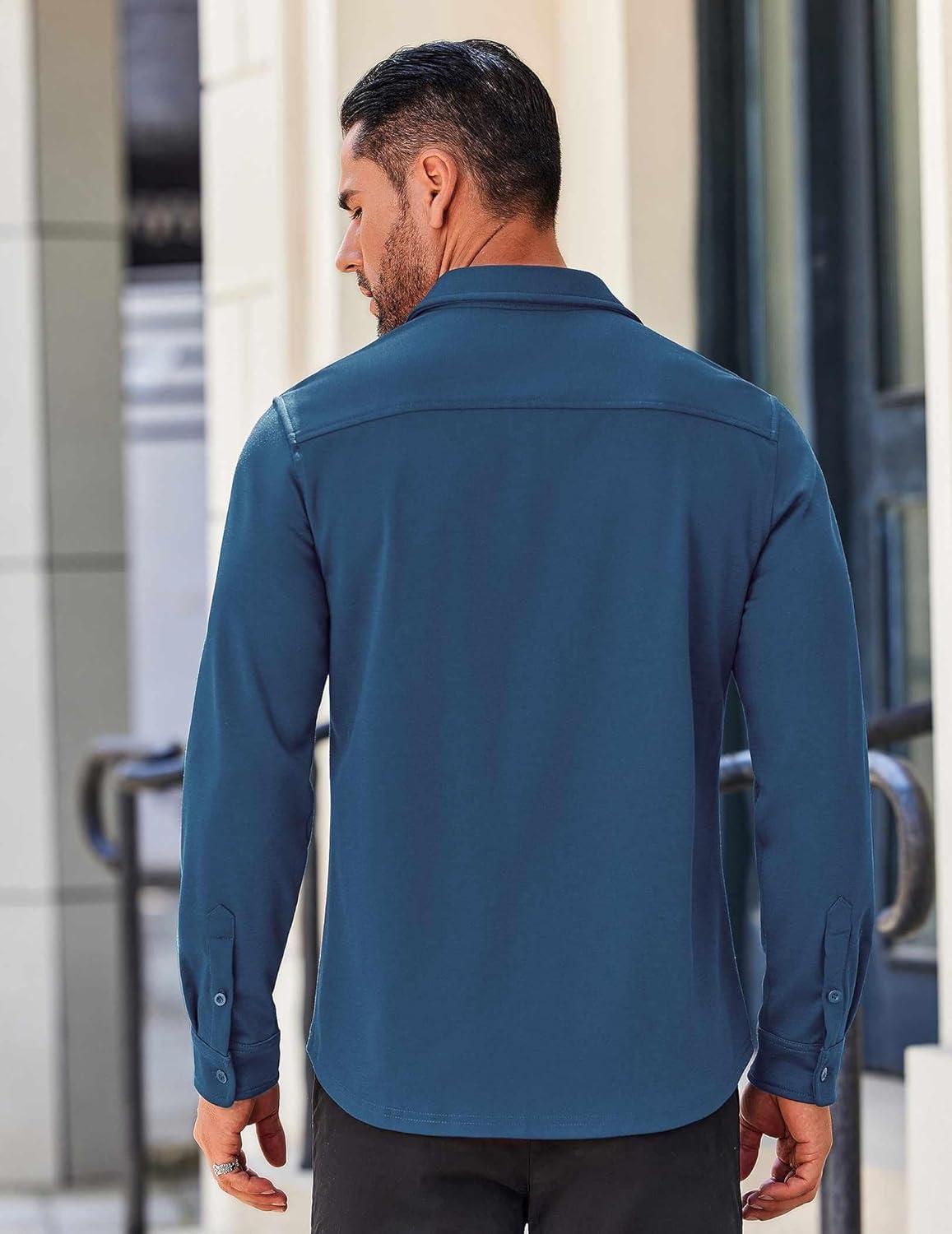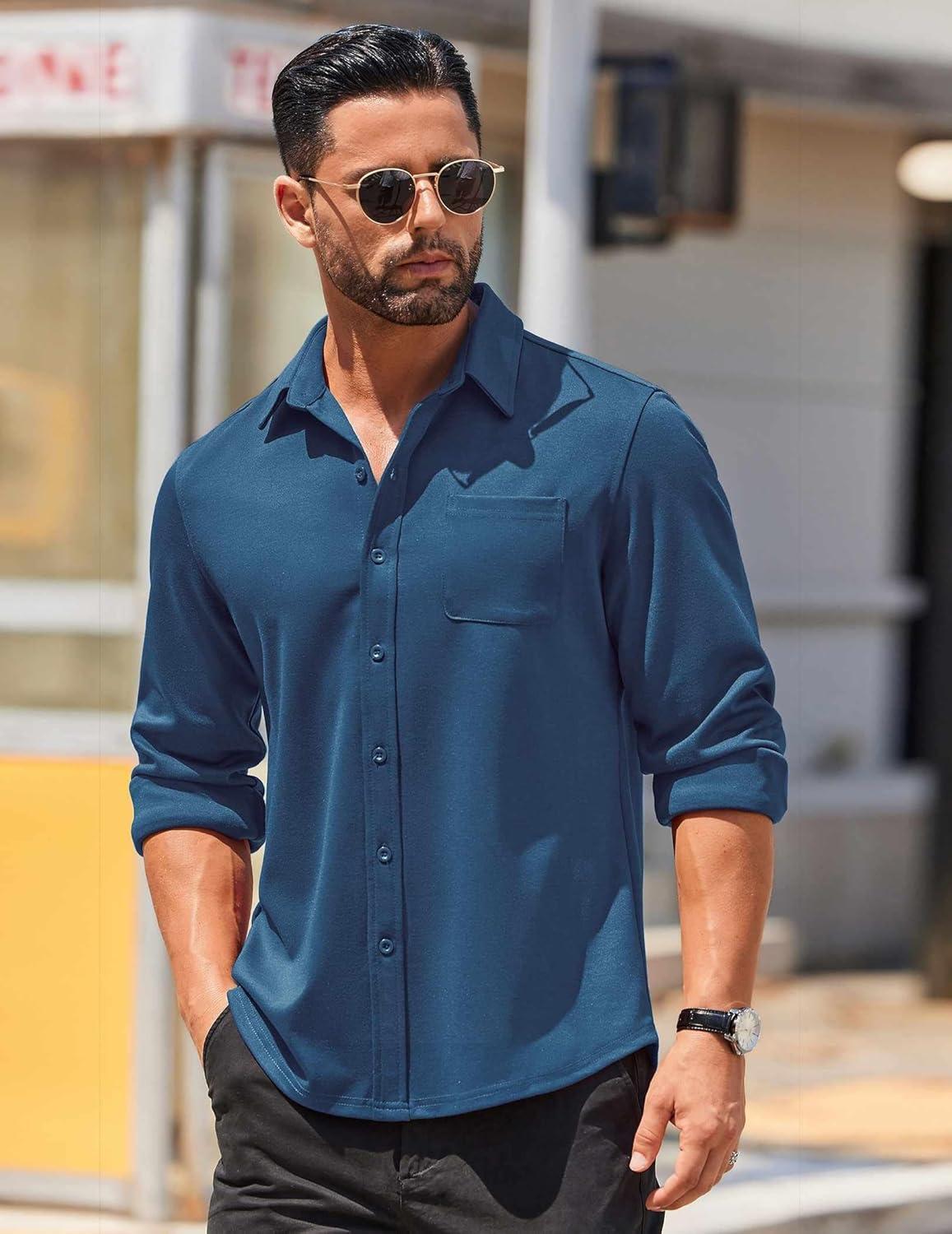 COOFANDY Mens Long Sleeve Wrinkle Free Shirts Casual Button Down Stretch Dress Shirt with Pocket(Sky Blue)