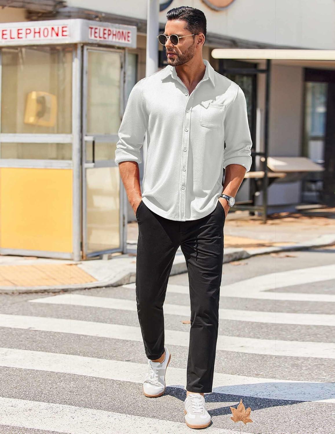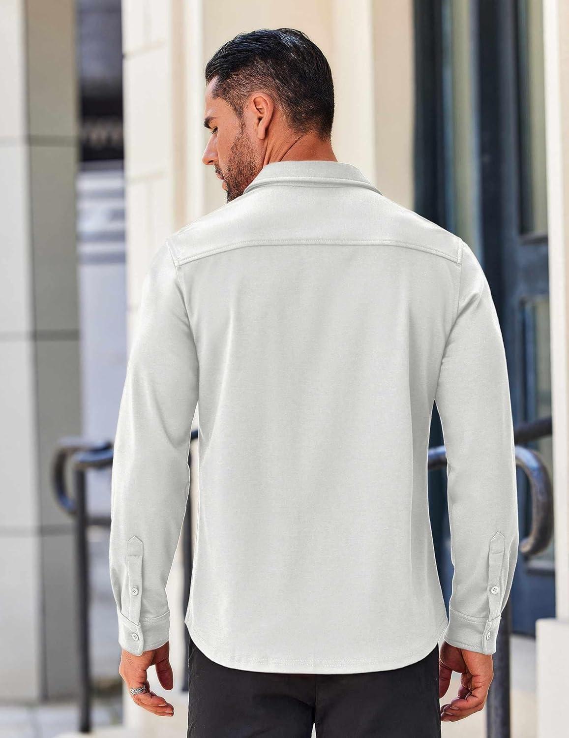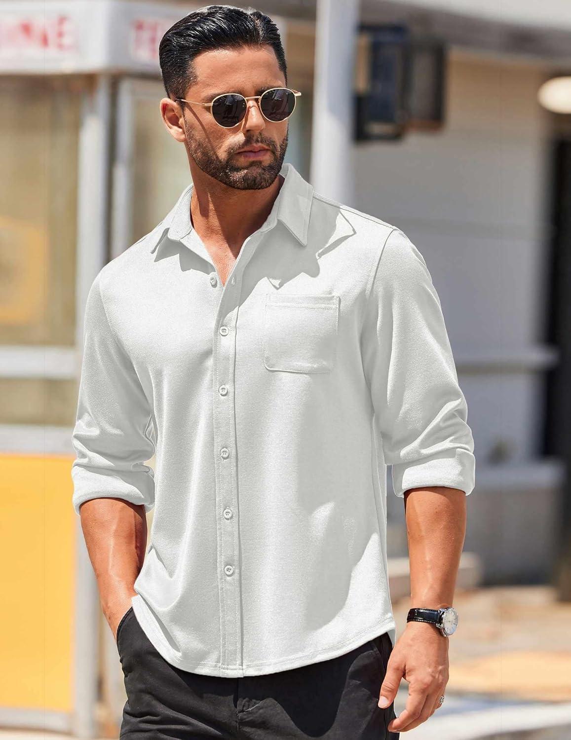 COOFANDY Mens Long Sleeve Wrinkle Free Shirts Casual Button Down Stretch Dress Shirt with Pocket(White)