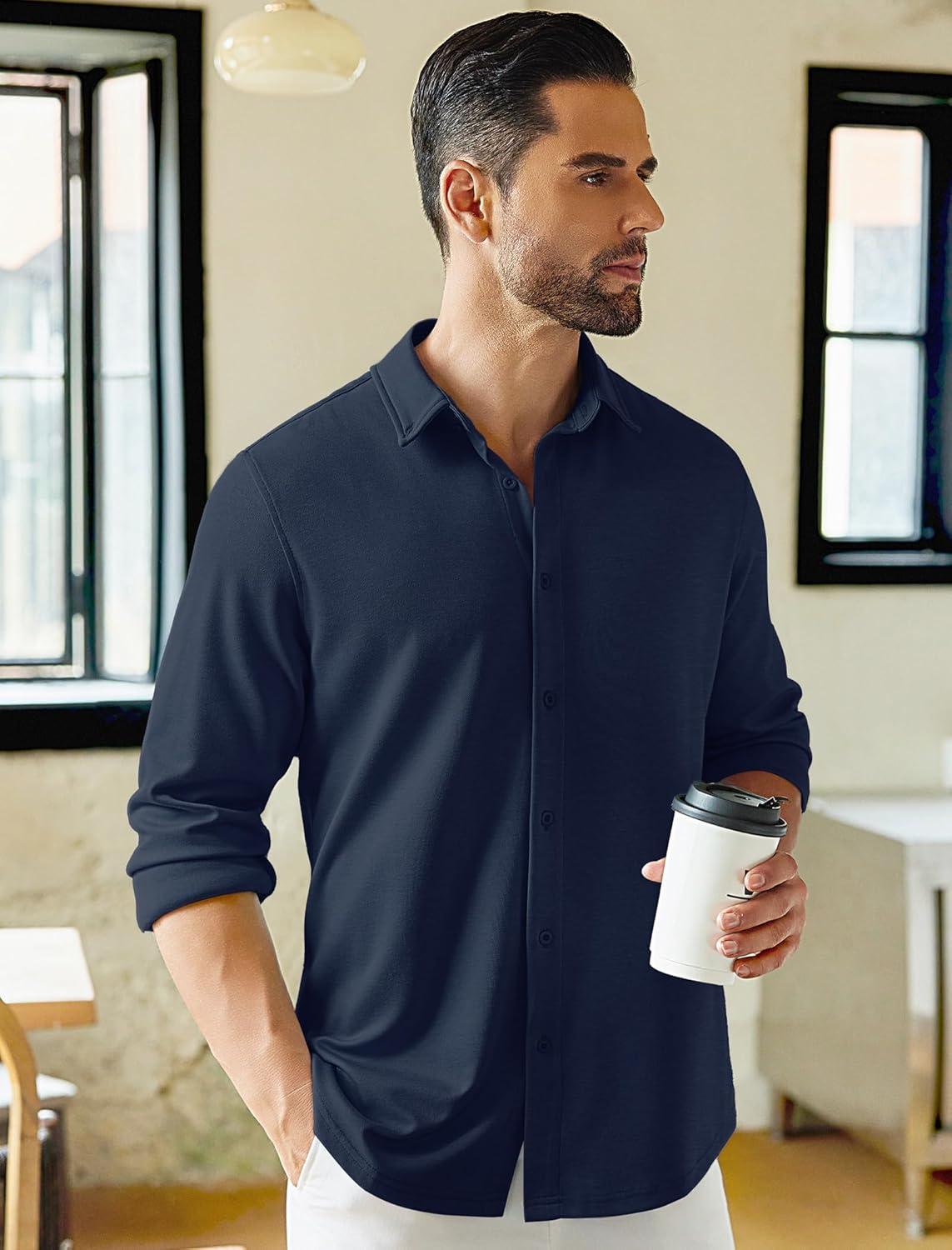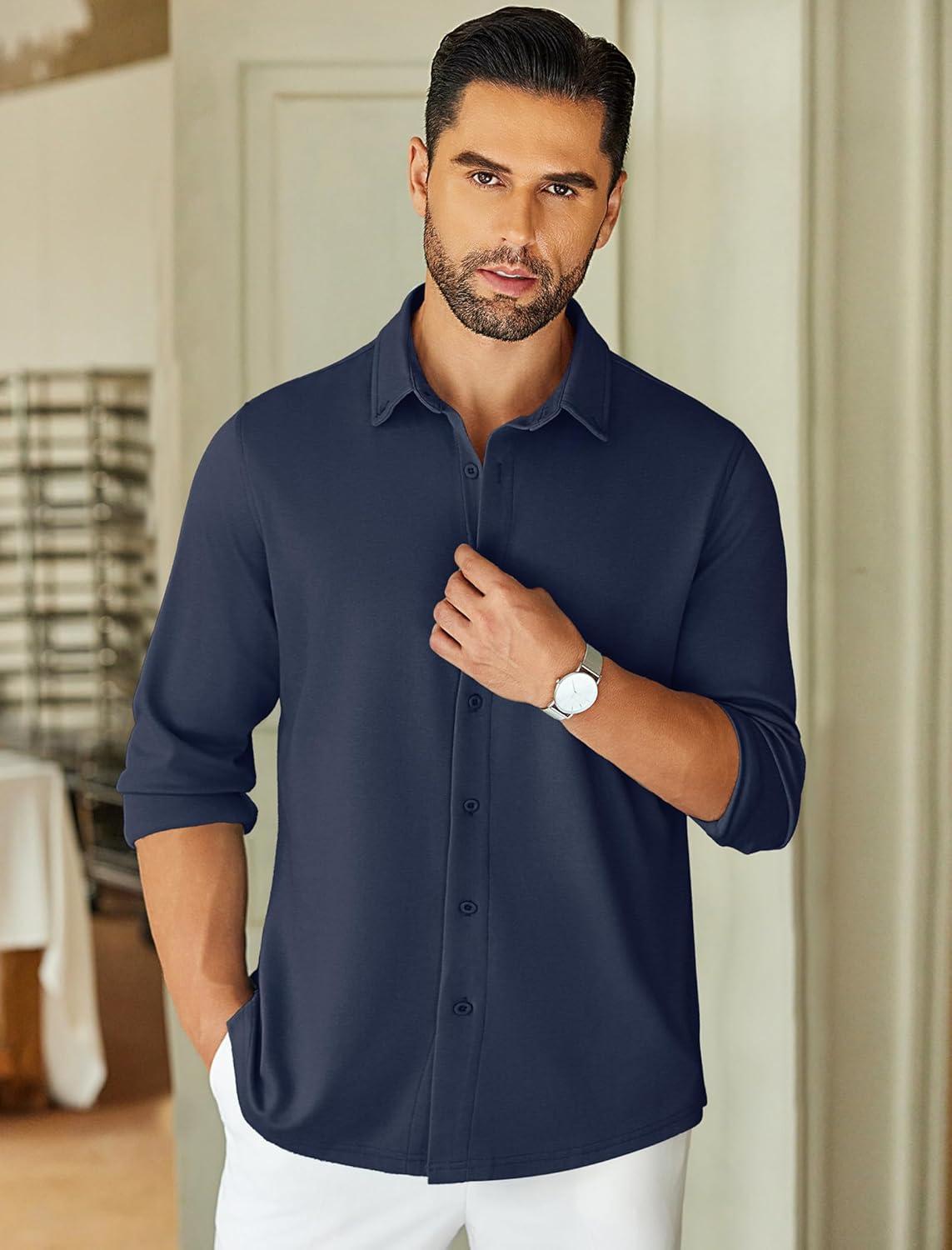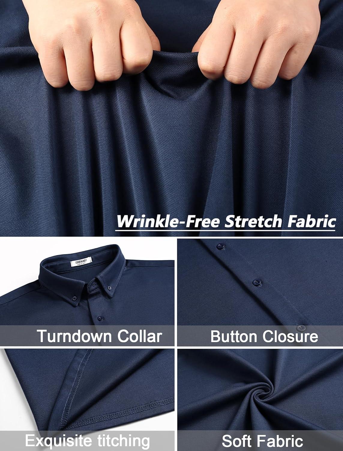 COOFANDY Mens Long Sleeve Wrinkle Free Shirts Stretch Dress Shirts Regular Fit Button Down Shirt(Dark Blue)