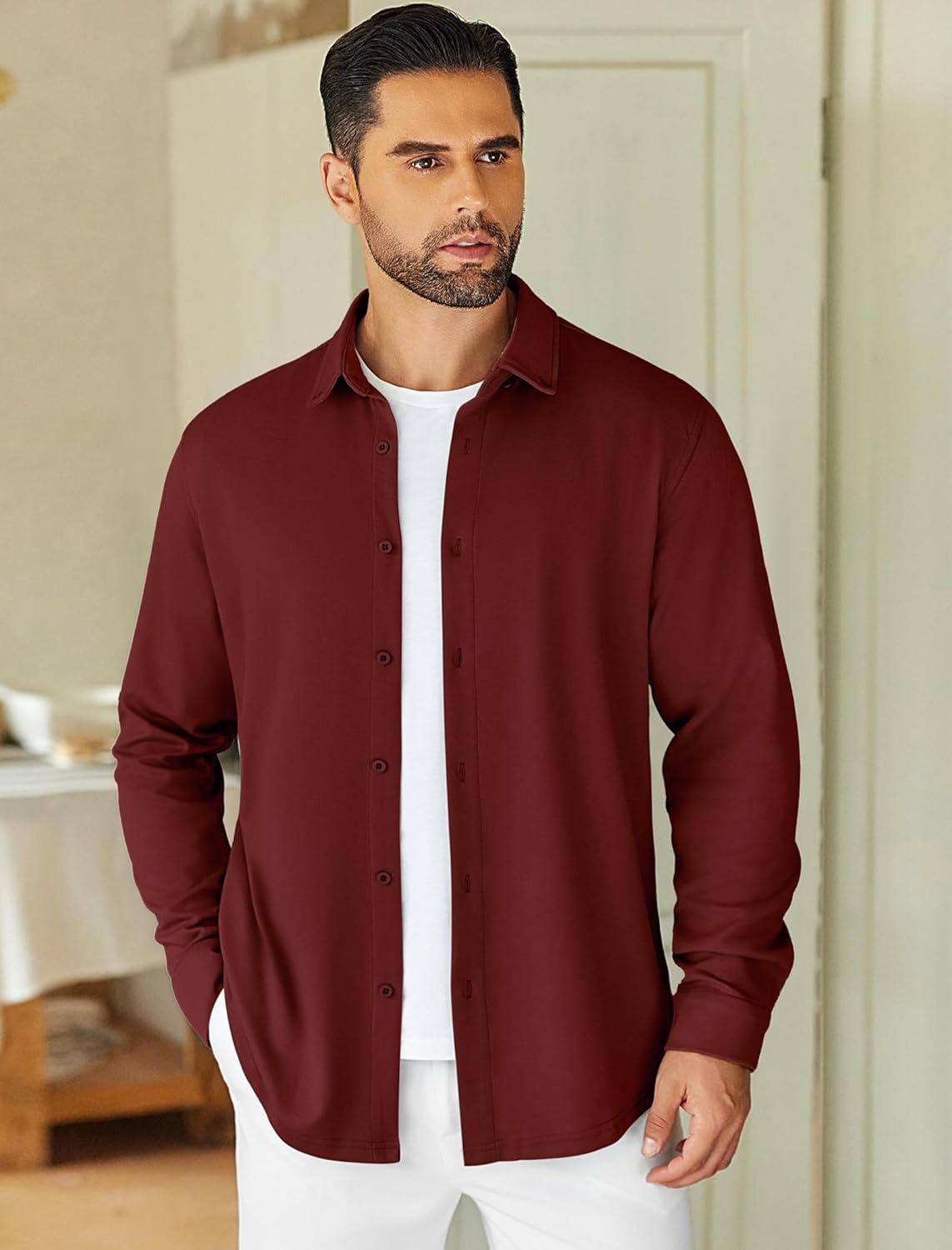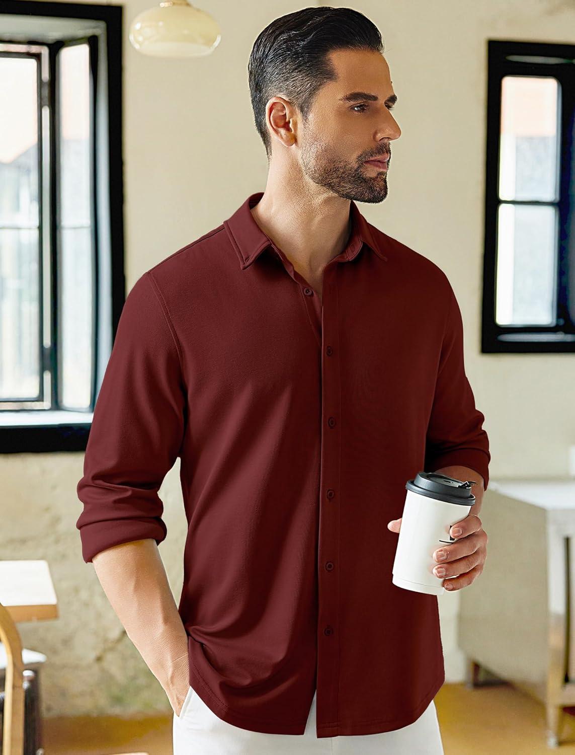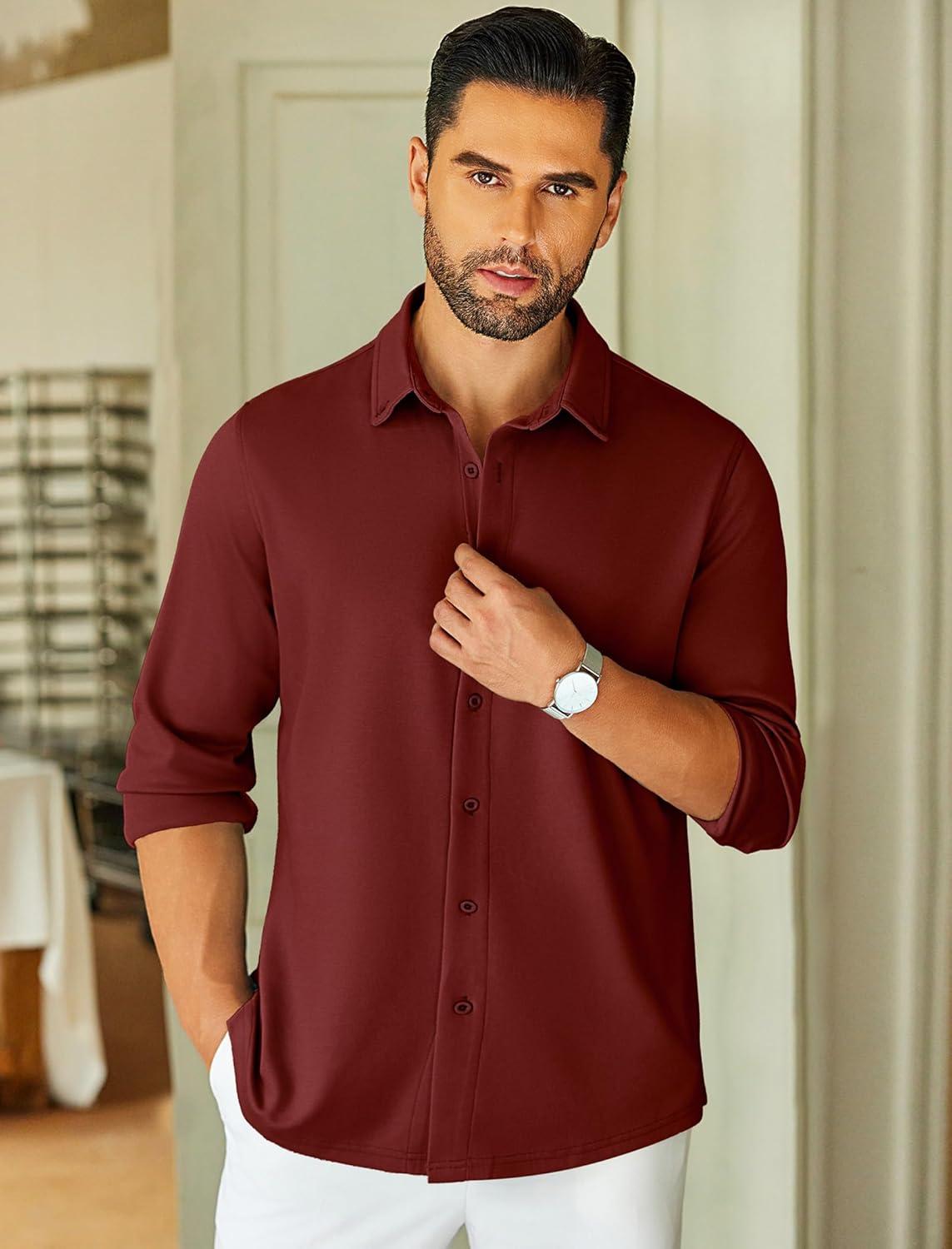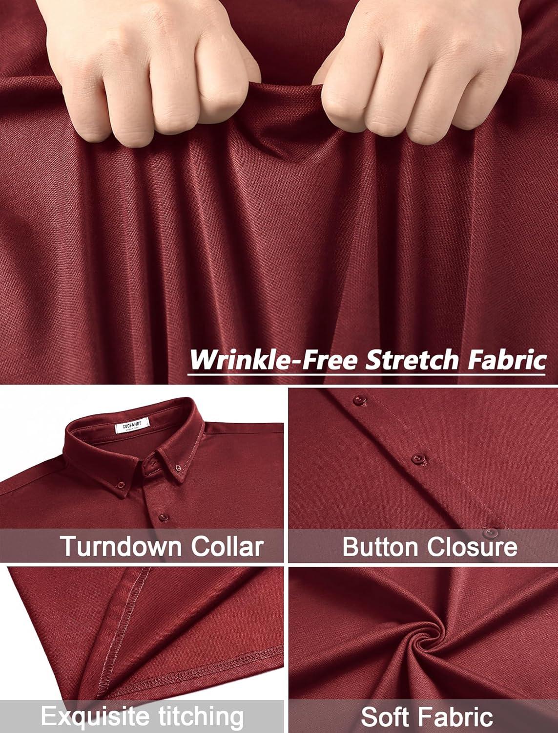 COOFANDY Mens Long Sleeve Wrinkle Free Shirts Stretch Dress Shirts Regular Fit Button Down Shirt(Wine Red)
