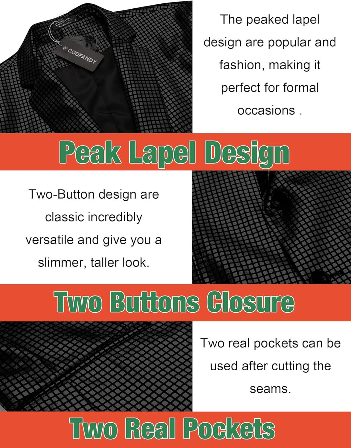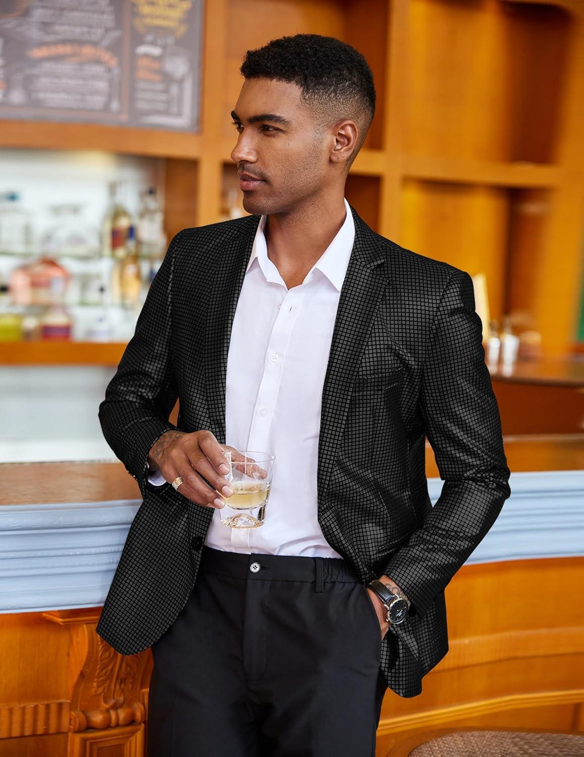 COOFANDY Mens Metallic Jacket Regular Fit Blazer Casual 70s Disco Party Sport Coat(Black)