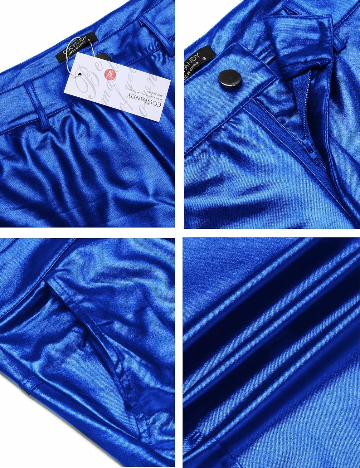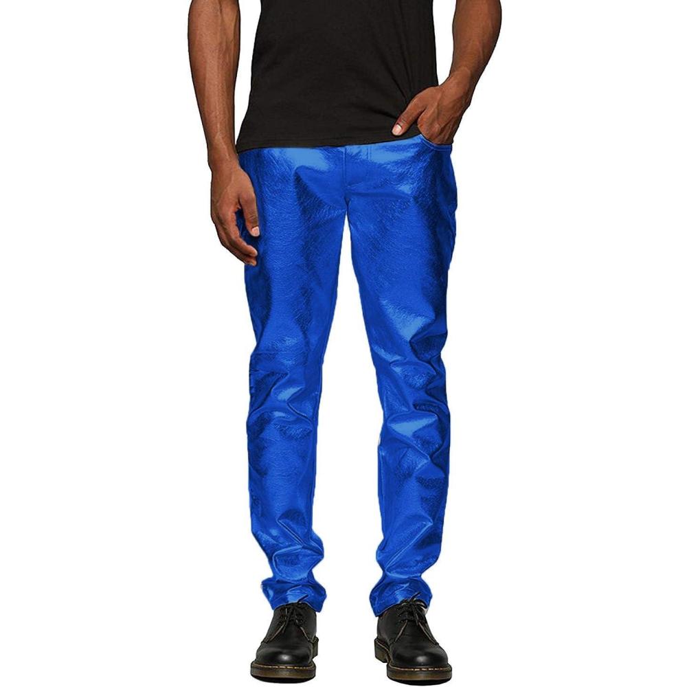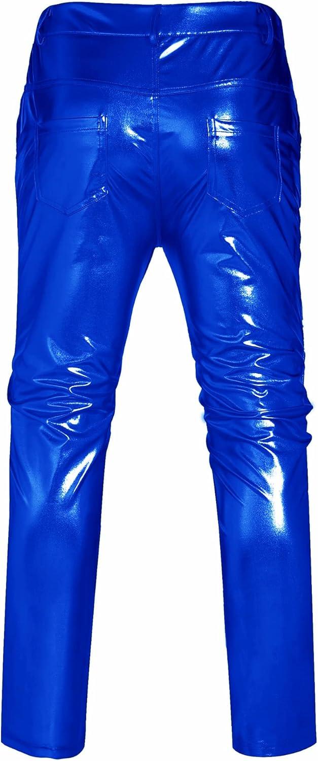 COOFANDY Men's Metallic Shiny Pants Night Club Pants 70s 80s 90s Disco Pant Party Dance Straight Leg Trousers(Blue)