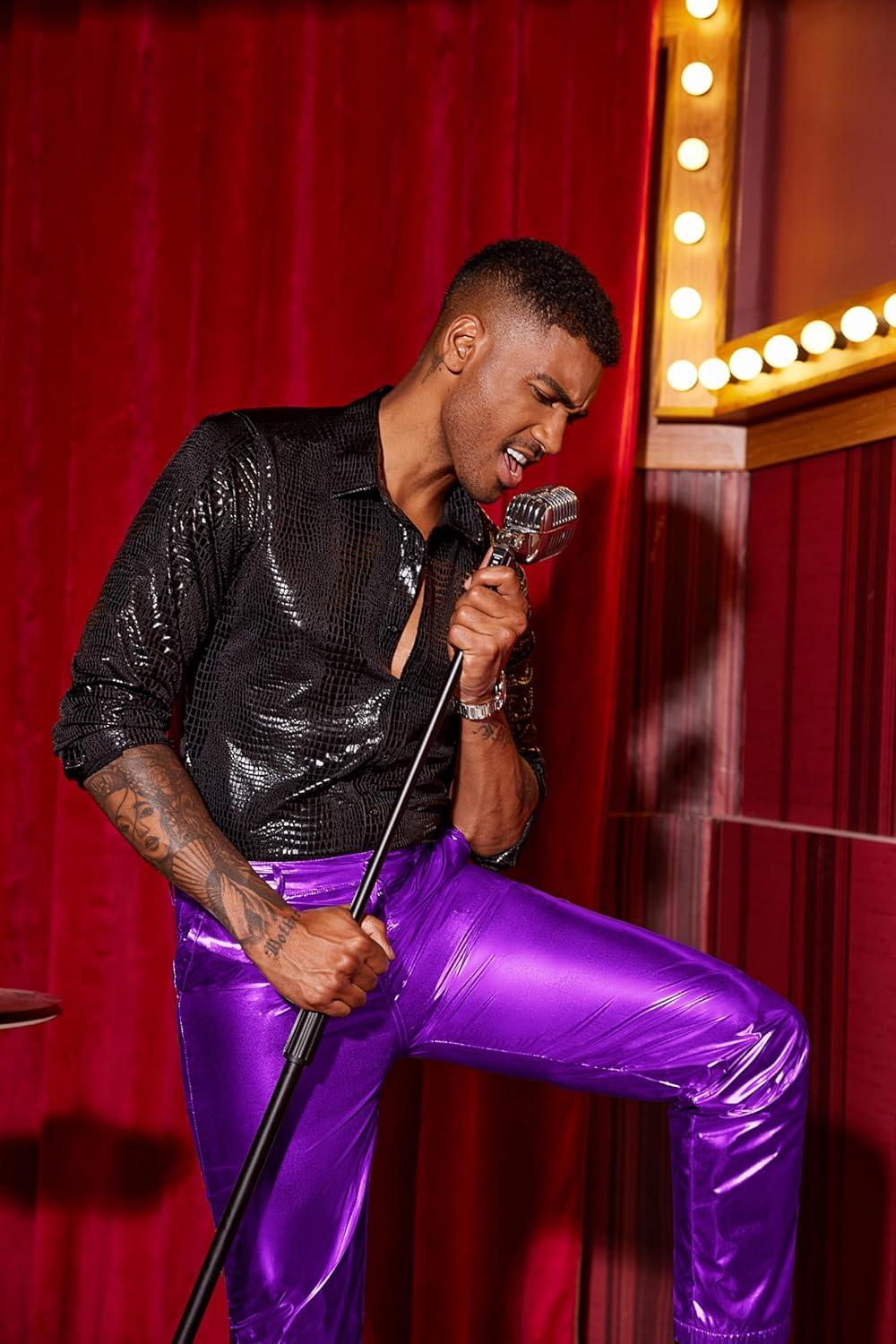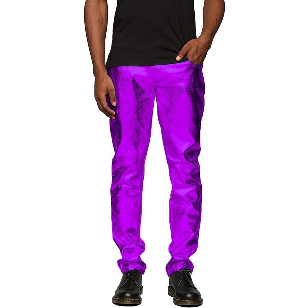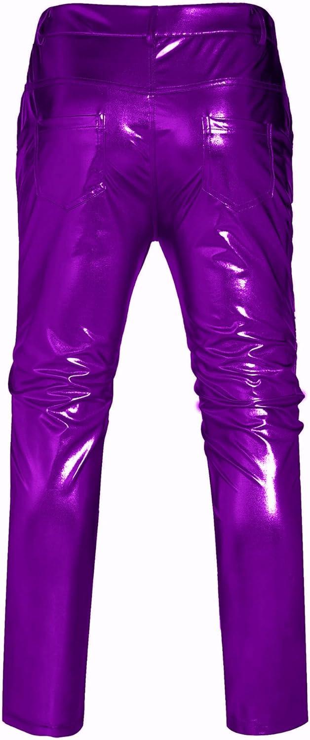 COOFANDY Men’s Metallic Shiny Pants Night Club Pants 70s 80s 90s Disco Pant Party Dance Straight Leg Trousers(Luxurious Purple)