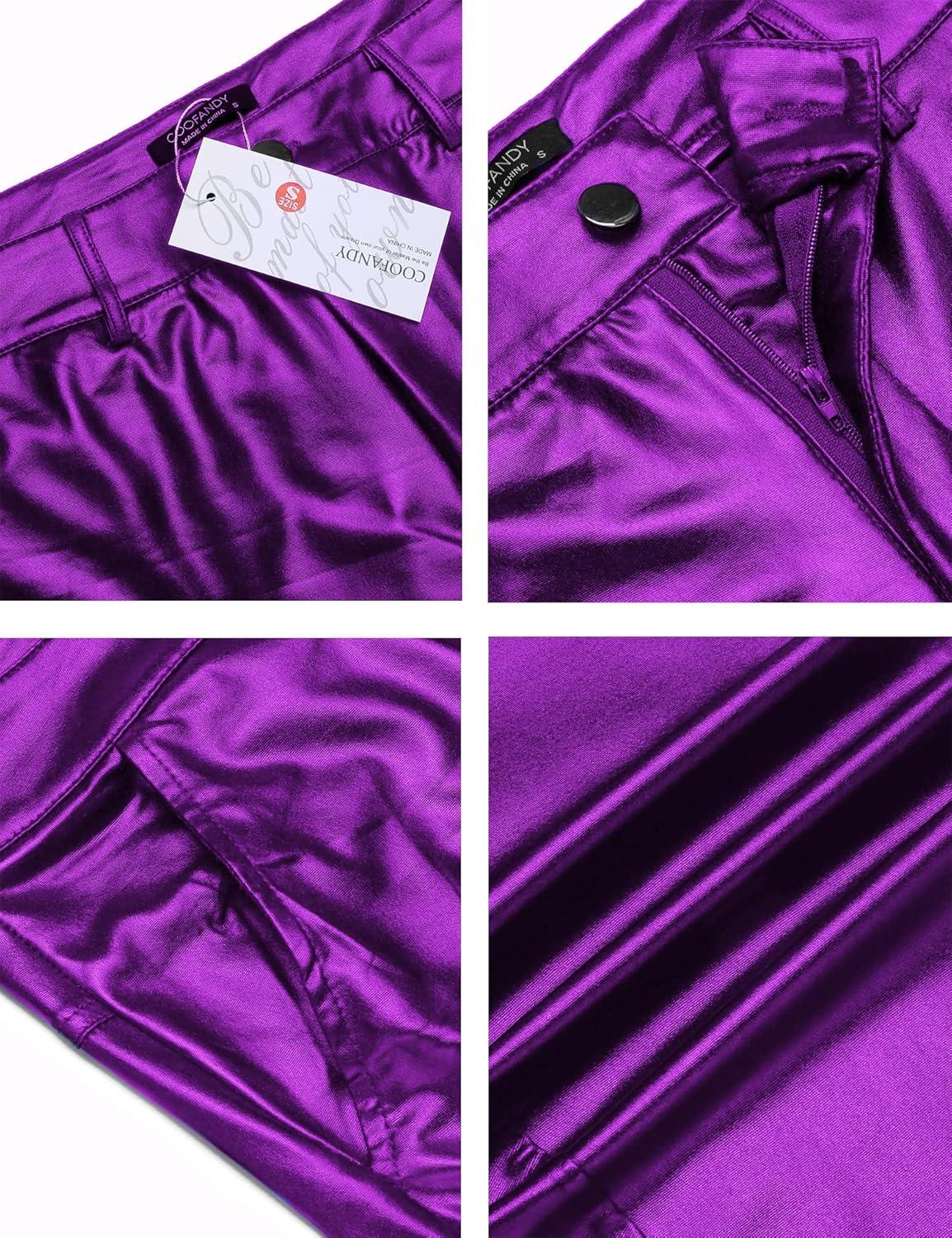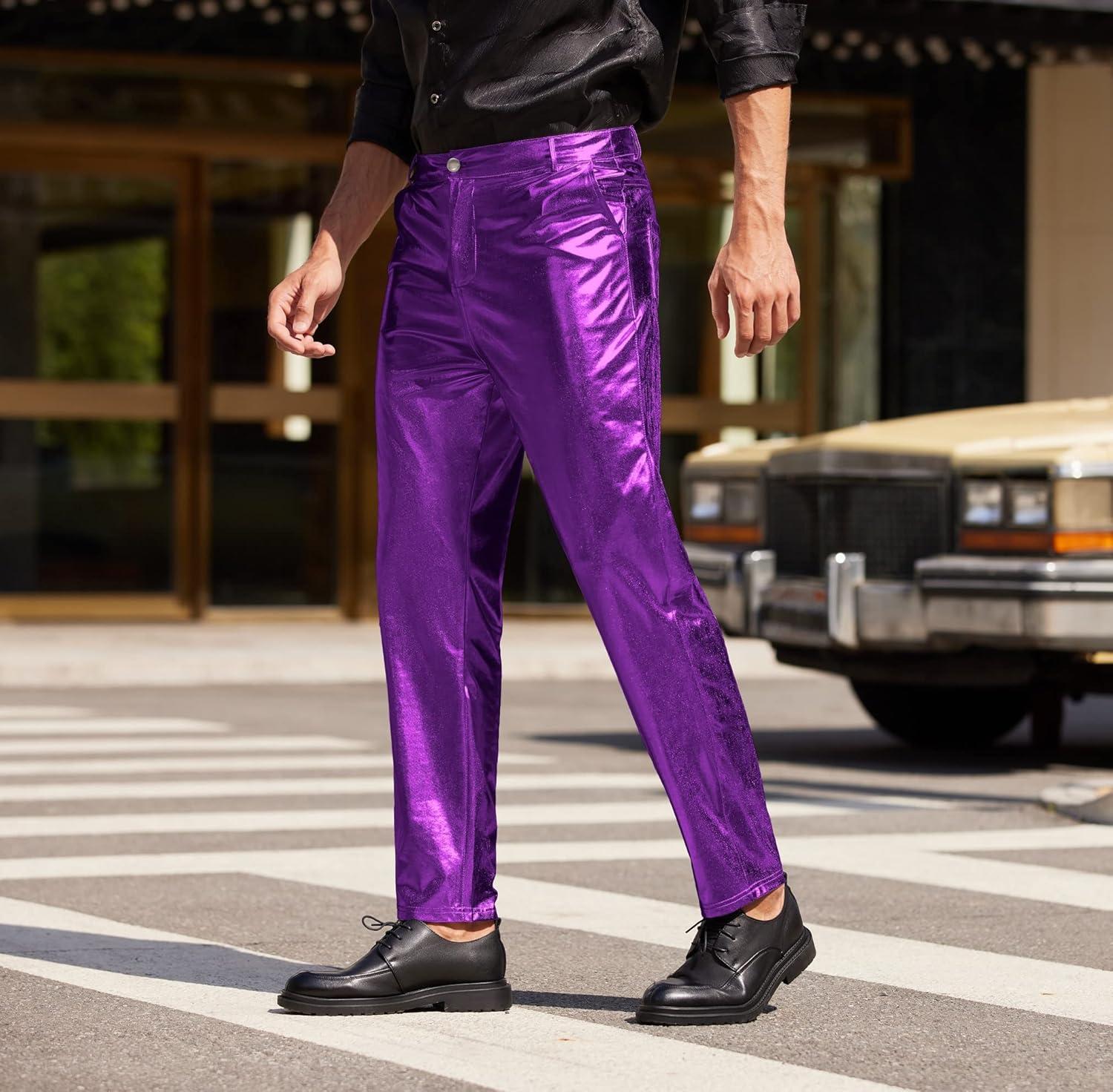 COOFANDY Men's Metallic Shiny Pants Night Club Pants 70s 80s 90s Disco Pant Party Dance Straight Leg Trousers(Luxurious Purple)