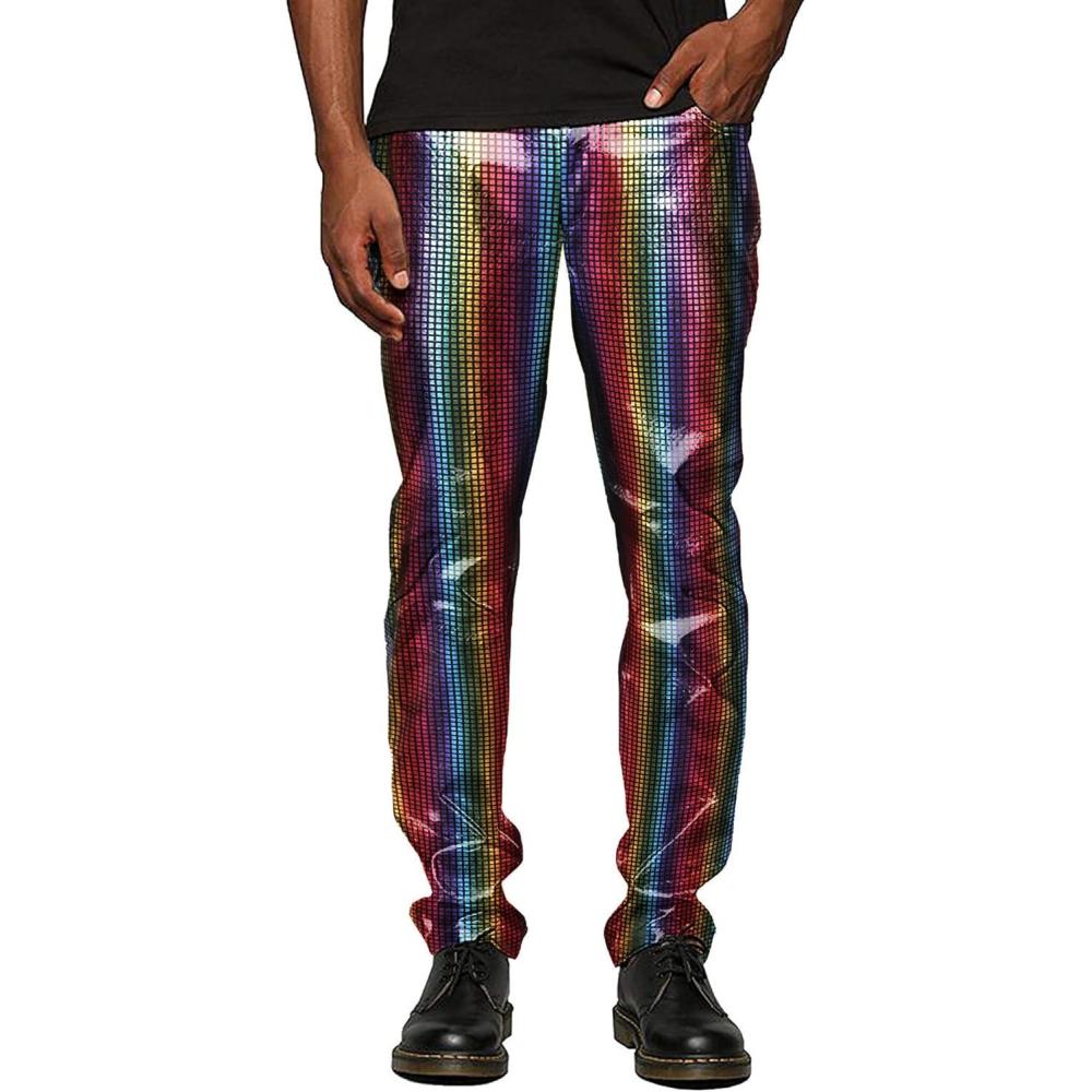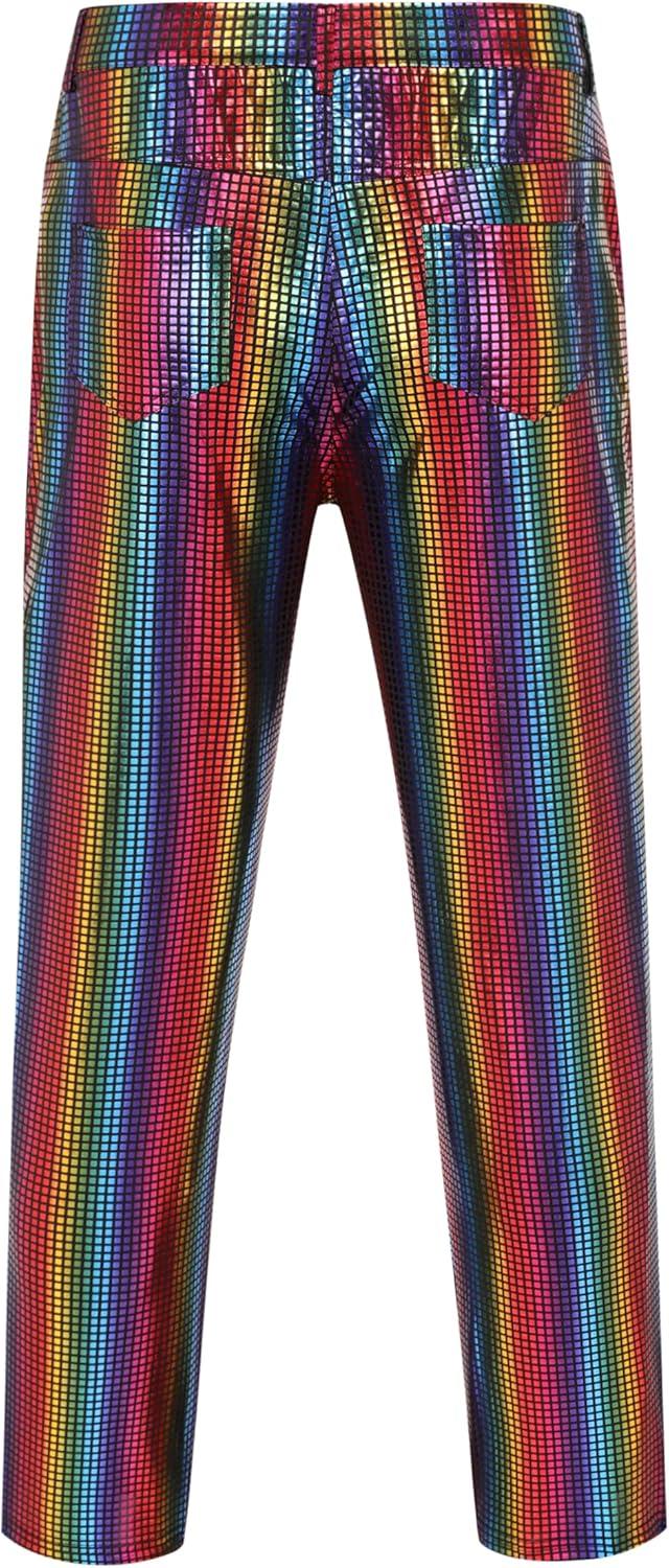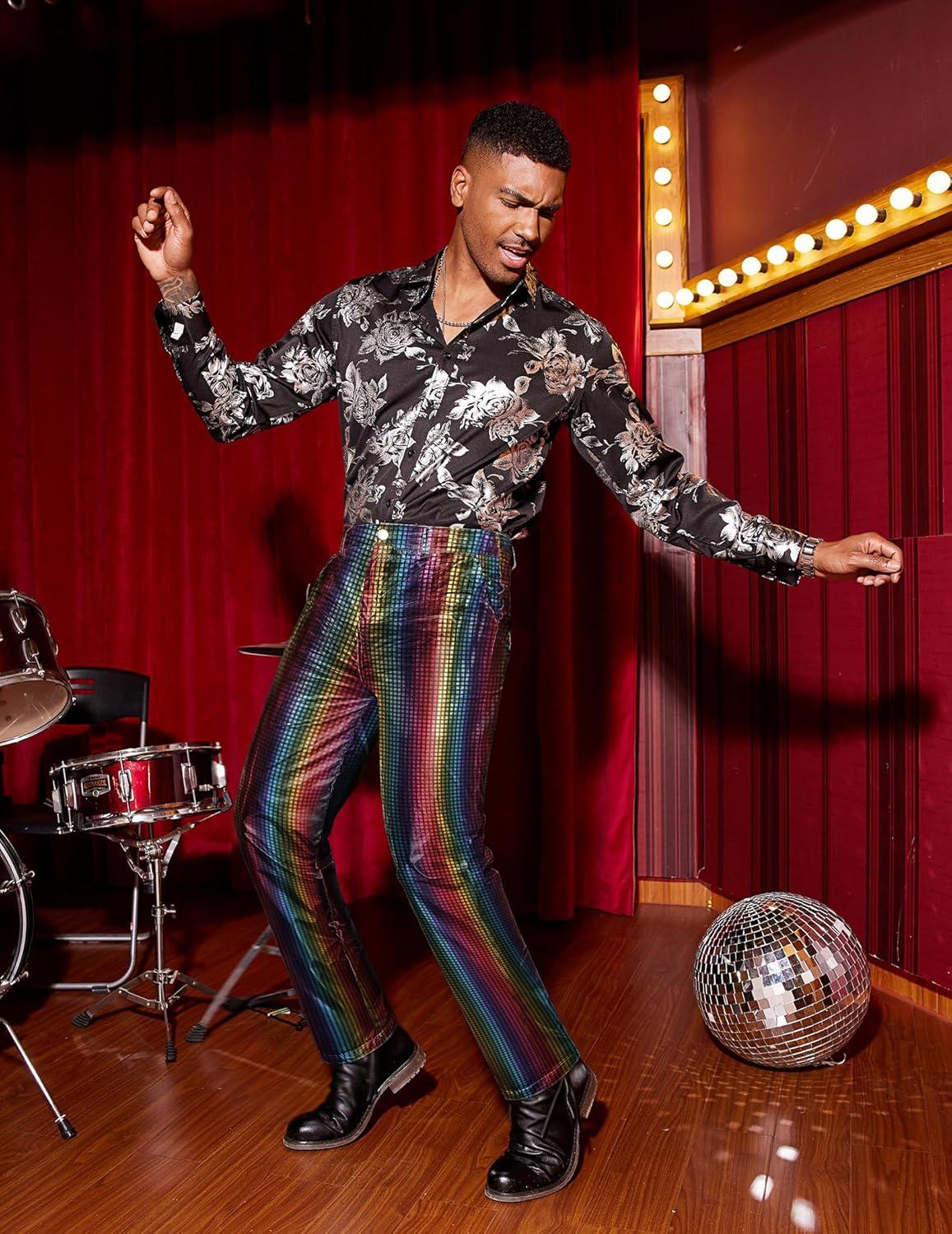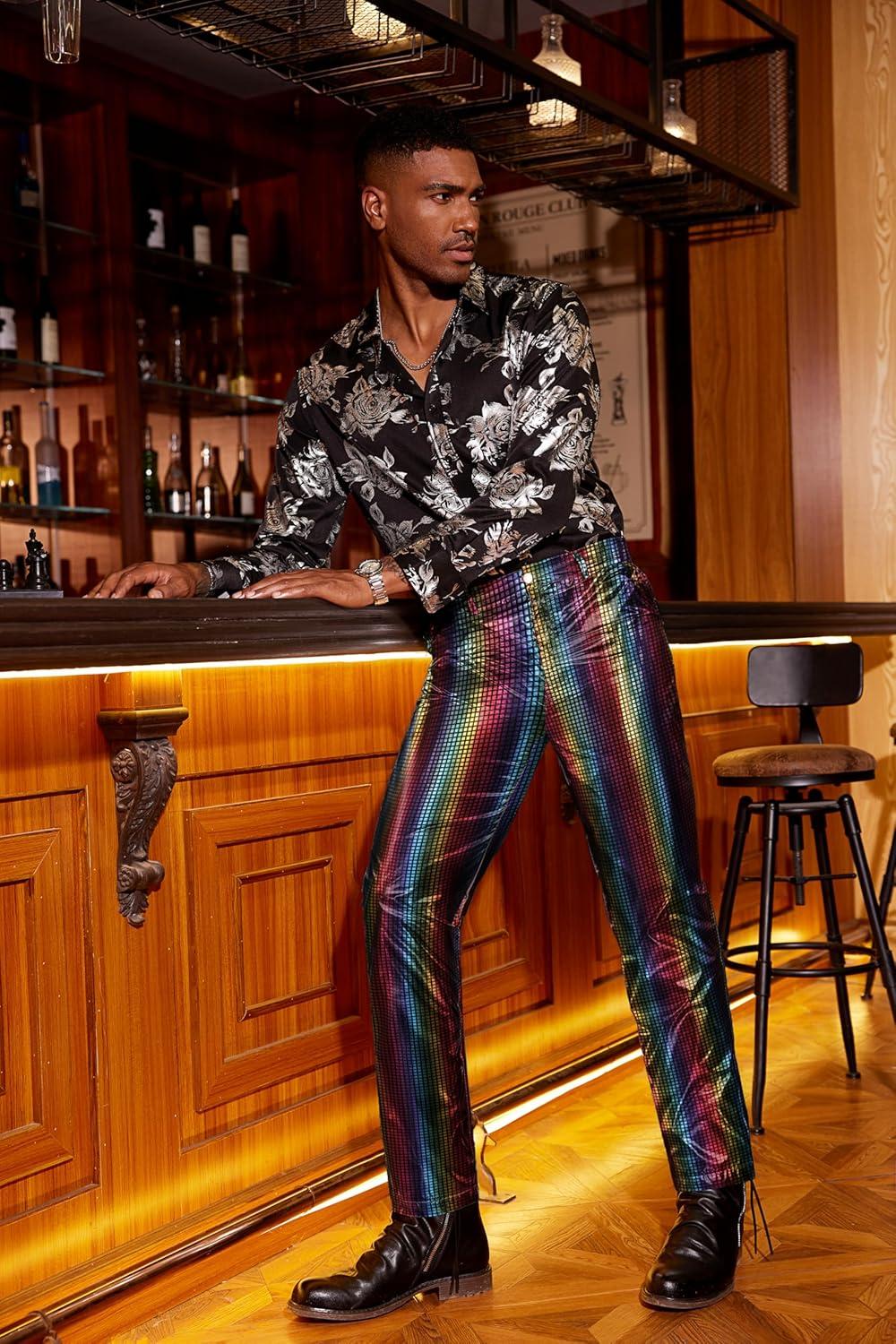 COOFANDY Men’s Metallic Shiny Pants Night Club Pants 70s 80s 90s Disco Pant Party Dance Straight Leg Trousers(Multicolor)