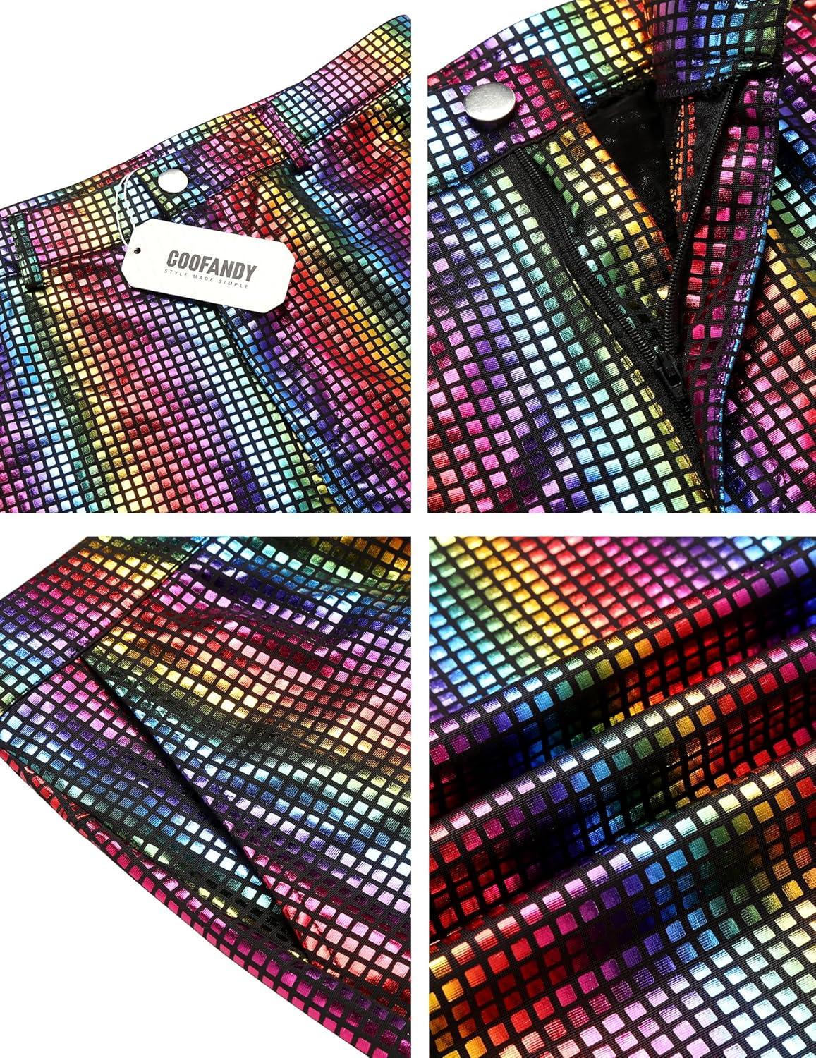 COOFANDY Men's Metallic Shiny Pants Night Club Pants 70s 80s 90s Disco Pant Party Dance Straight Leg Trousers(Multicolour Sequin)