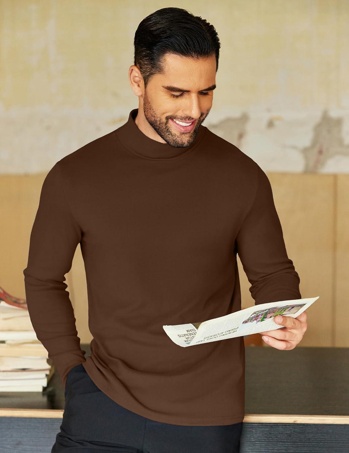 COOFANDY Mens Mock Neck Shirts Fleece Long Sleeve Tops Basic Pullover T-Shirts(2 Pcs-black/Brown)