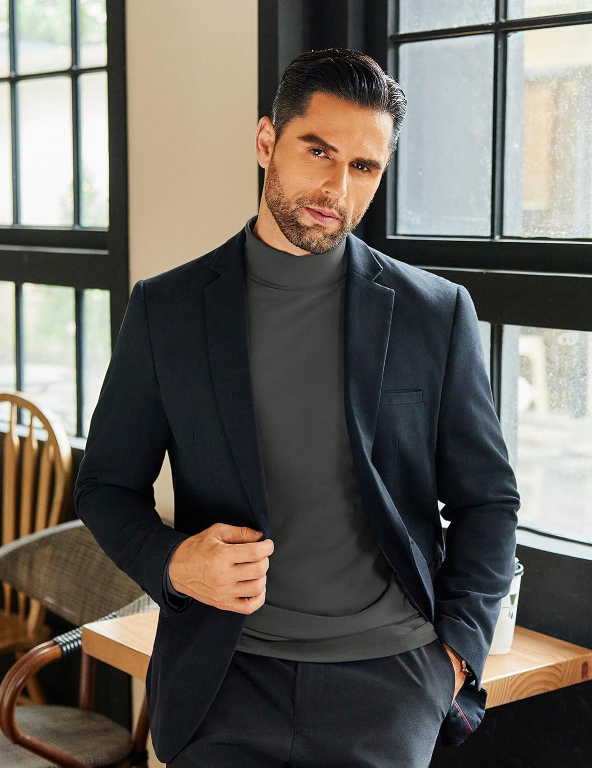 COOFANDY Mens Mock Neck Shirts Fleece Long Sleeve Tops Basic Pullover T-Shirts(Dark Grey)