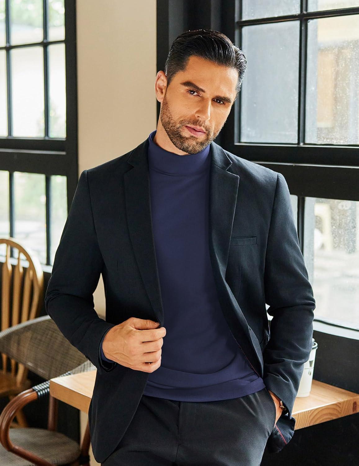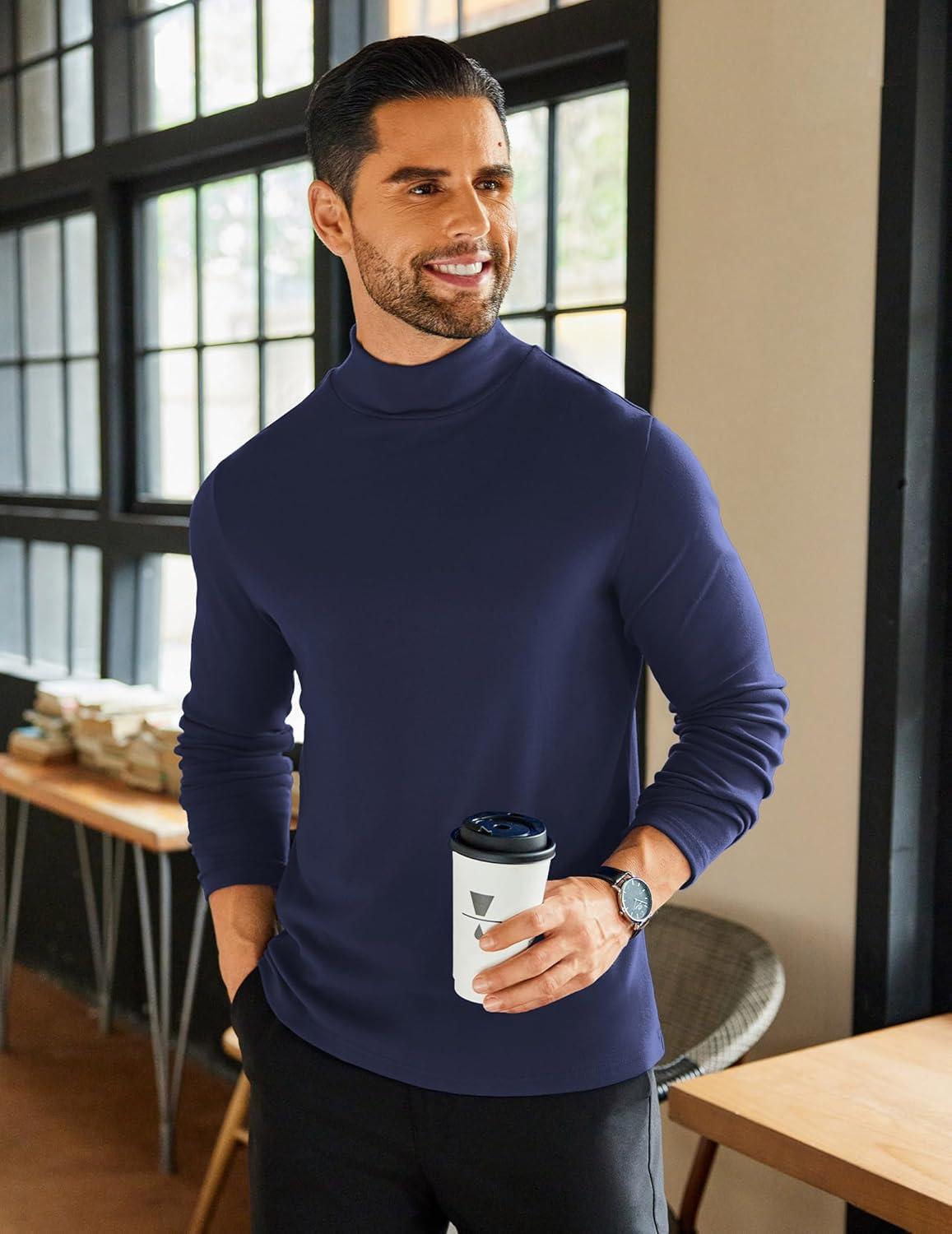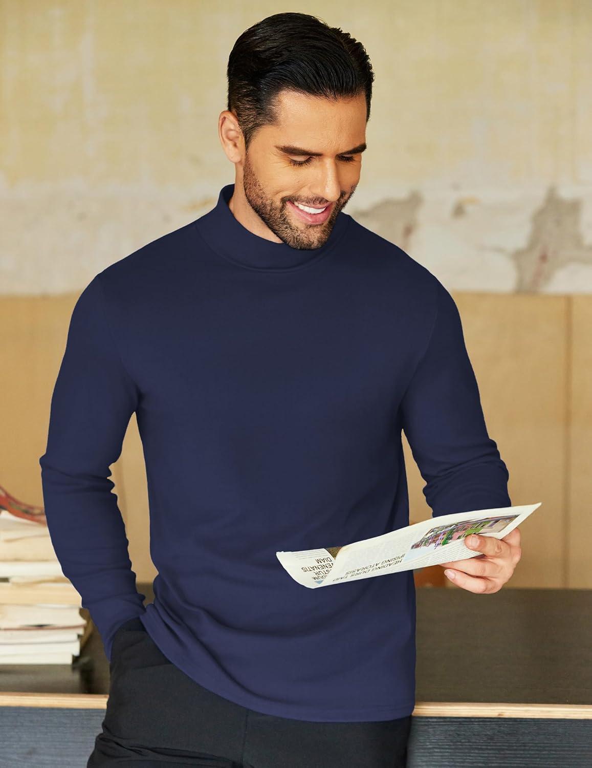 COOFANDY Mens Mock Neck Shirts Fleece Long Sleeve Tops Basic Pullover T-Shirts(Navy Blue)