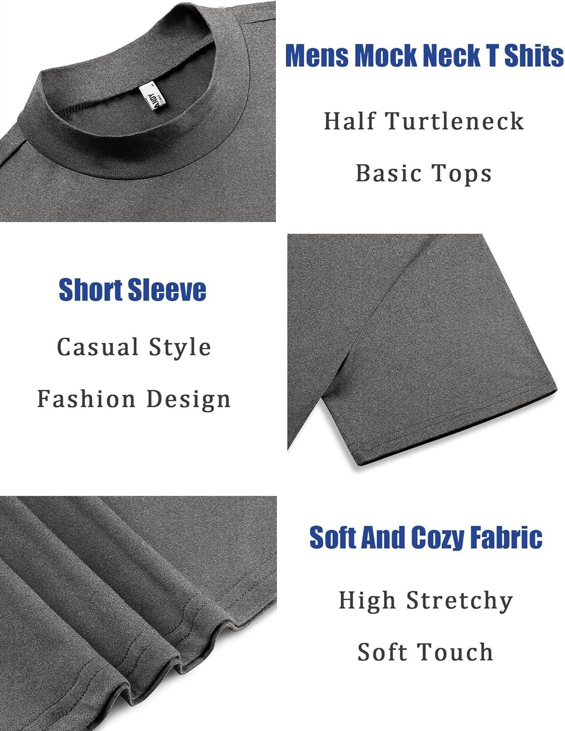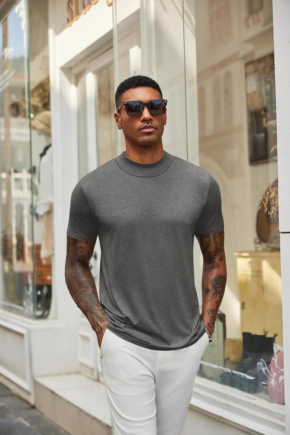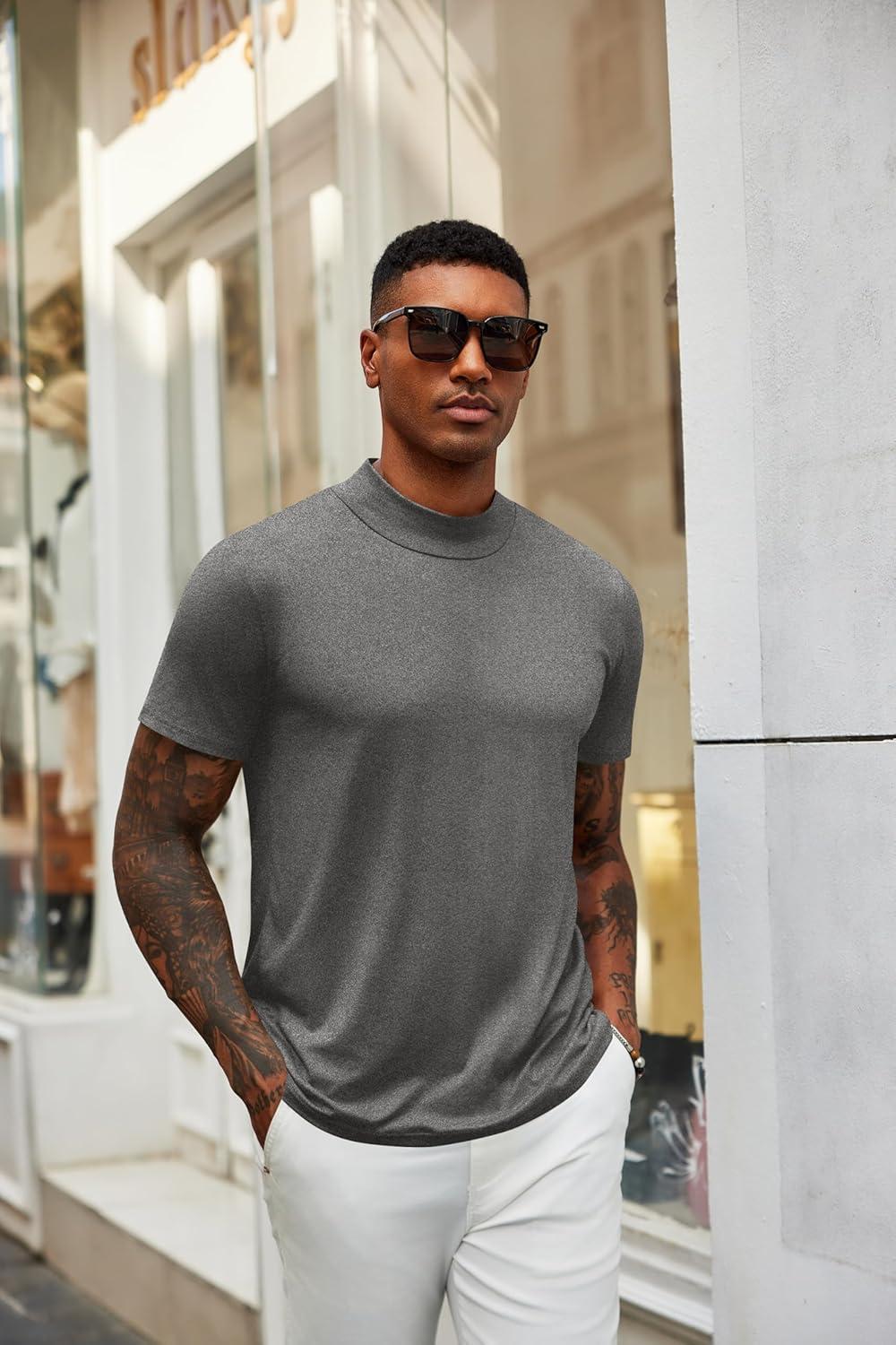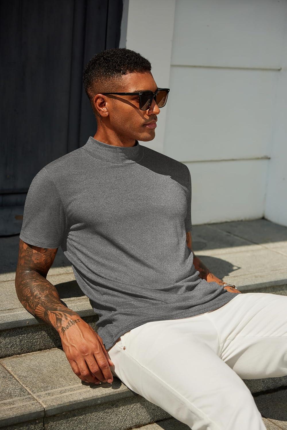 COOFANDY Men's Mock Neck T Shirt Short Sleeve Slim Fit Basic Casual T-Shirts Solid Color Pullover Tee(A-dark Grey)