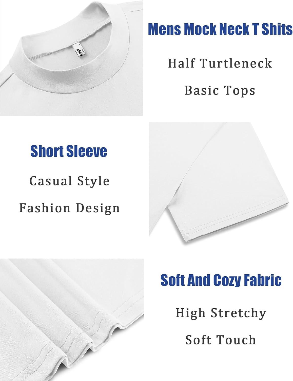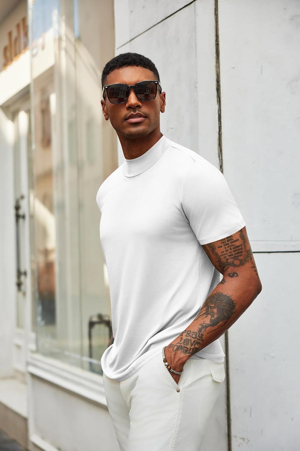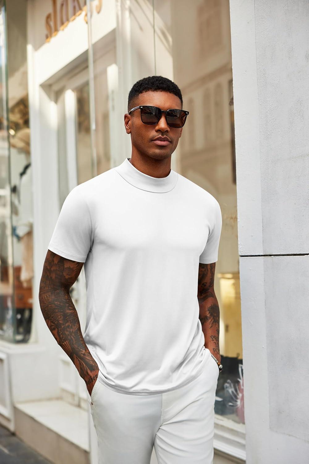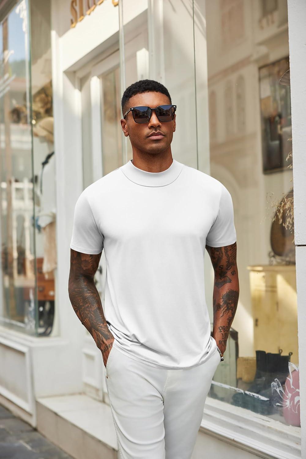 COOFANDY Men's Mock Neck T Shirt Short Sleeve Slim Fit Basic Casual T-Shirts Solid Color Pullover Tee(B-2 Pack White)