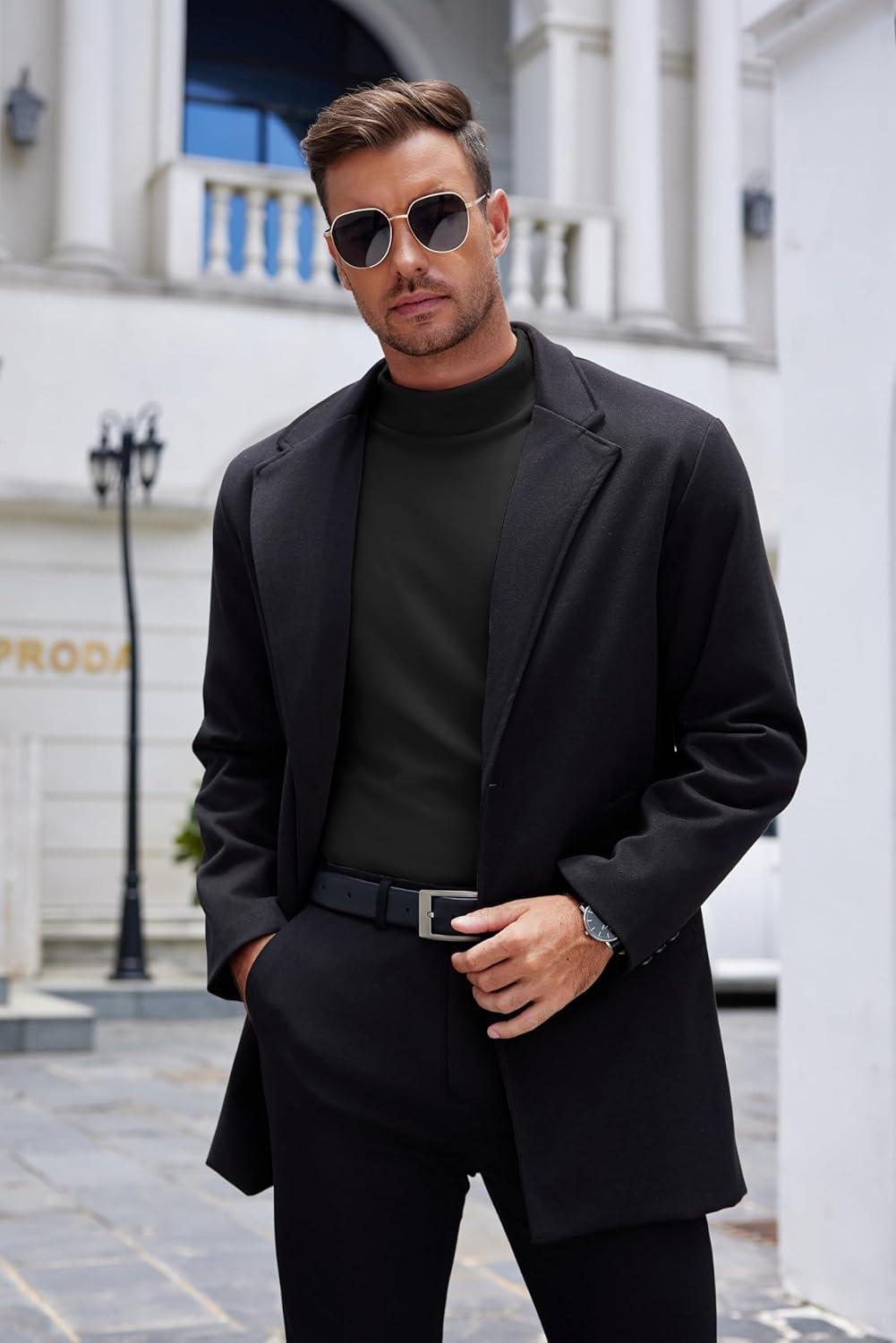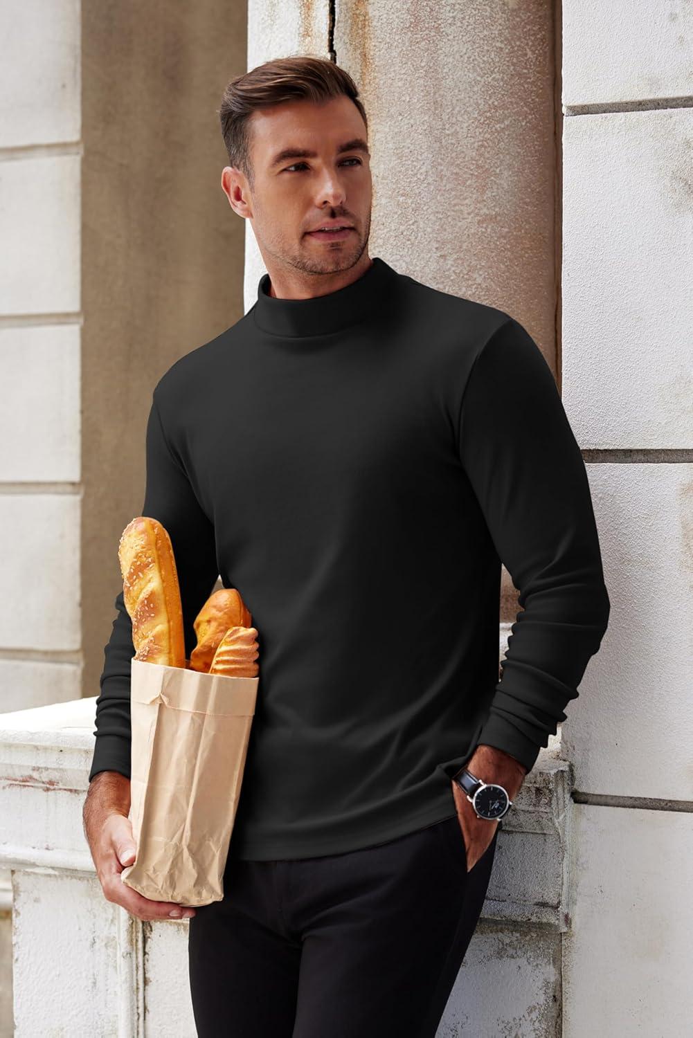 COOFANDY Mens Mock Turtleneck Long Sleeve Shirts Basic Thermal Turtle Neck Undershirt Lightweight Pullover Sweaters Top(A-black)