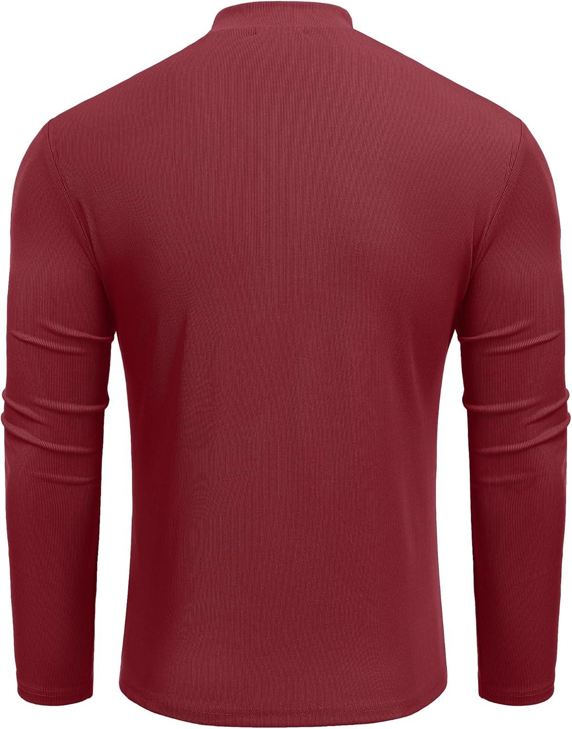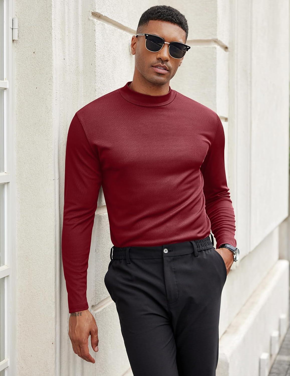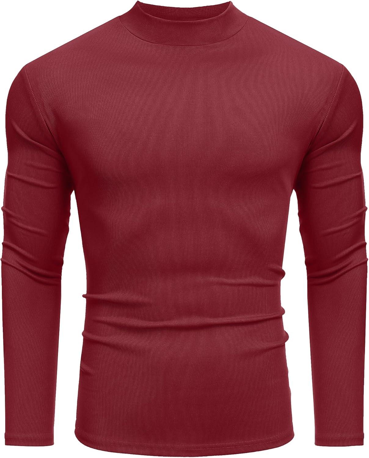 COOFANDY Men's Mock Turtleneck Long Sleeve Shirts Slim Fit Basic T-Shirt Lightweight Ribbed Pullover Sweater(1 Pack-wine Red)