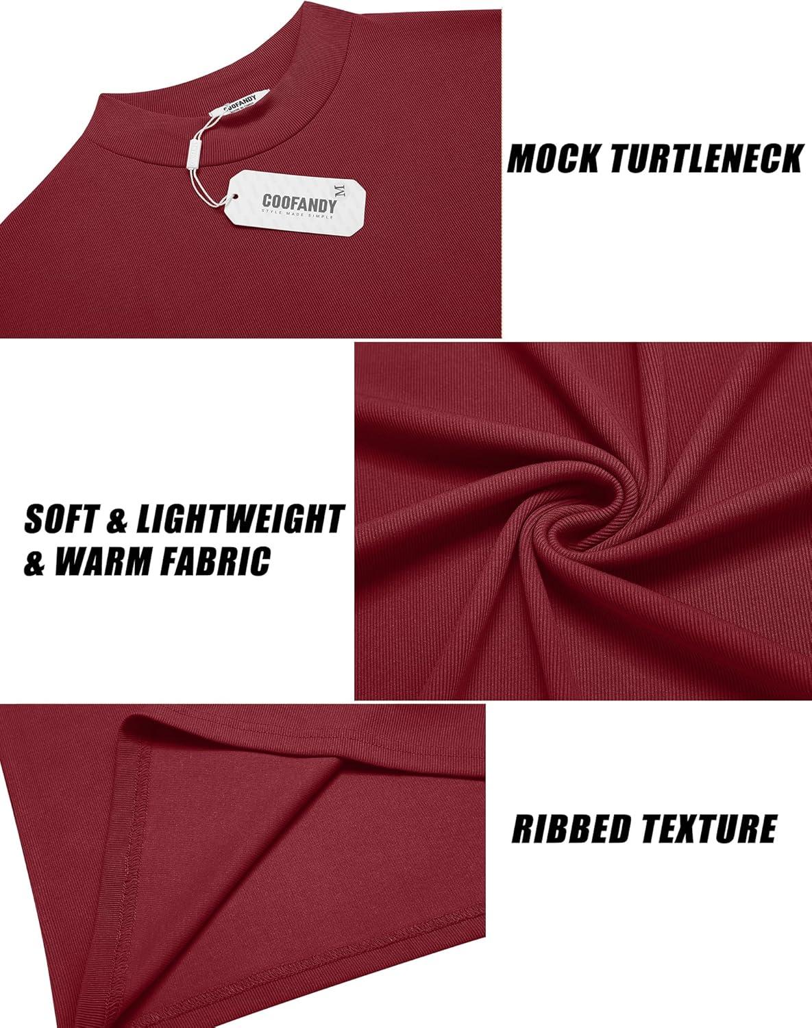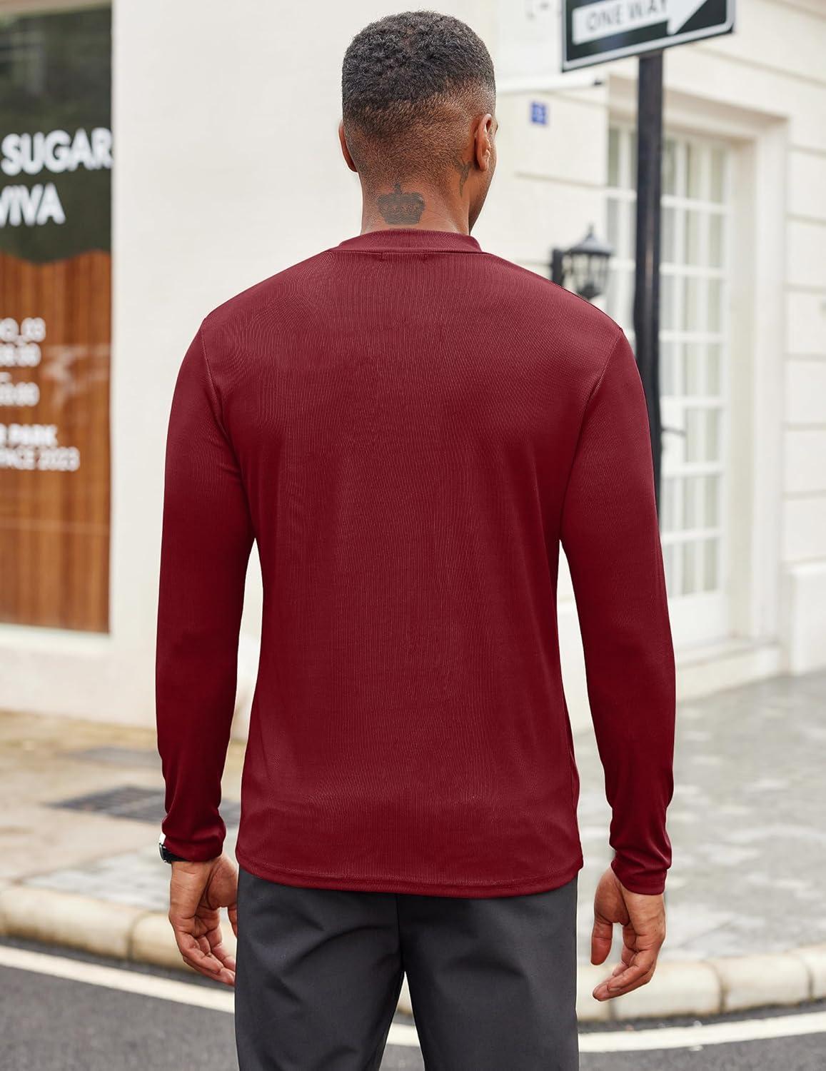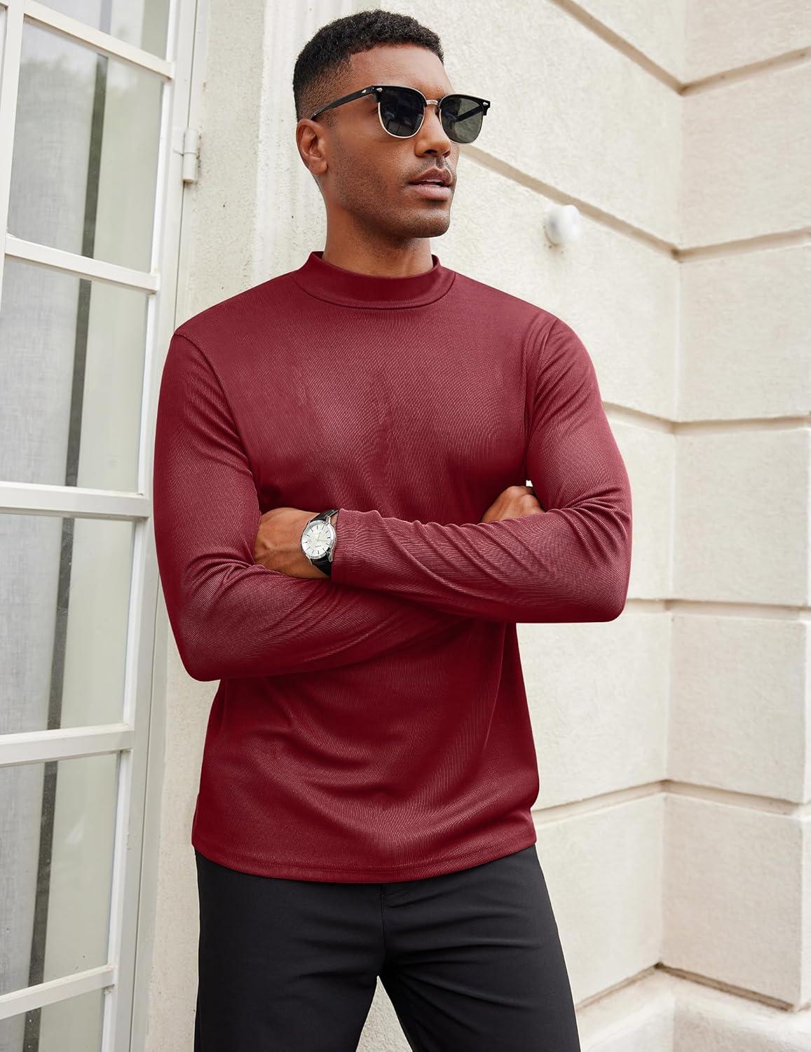 COOFANDY Men's Mock Turtleneck Long Sleeve Shirts Slim Fit Basic T-Shirt Lightweight Ribbed Pullover Sweater(1 Pack-wine Red)