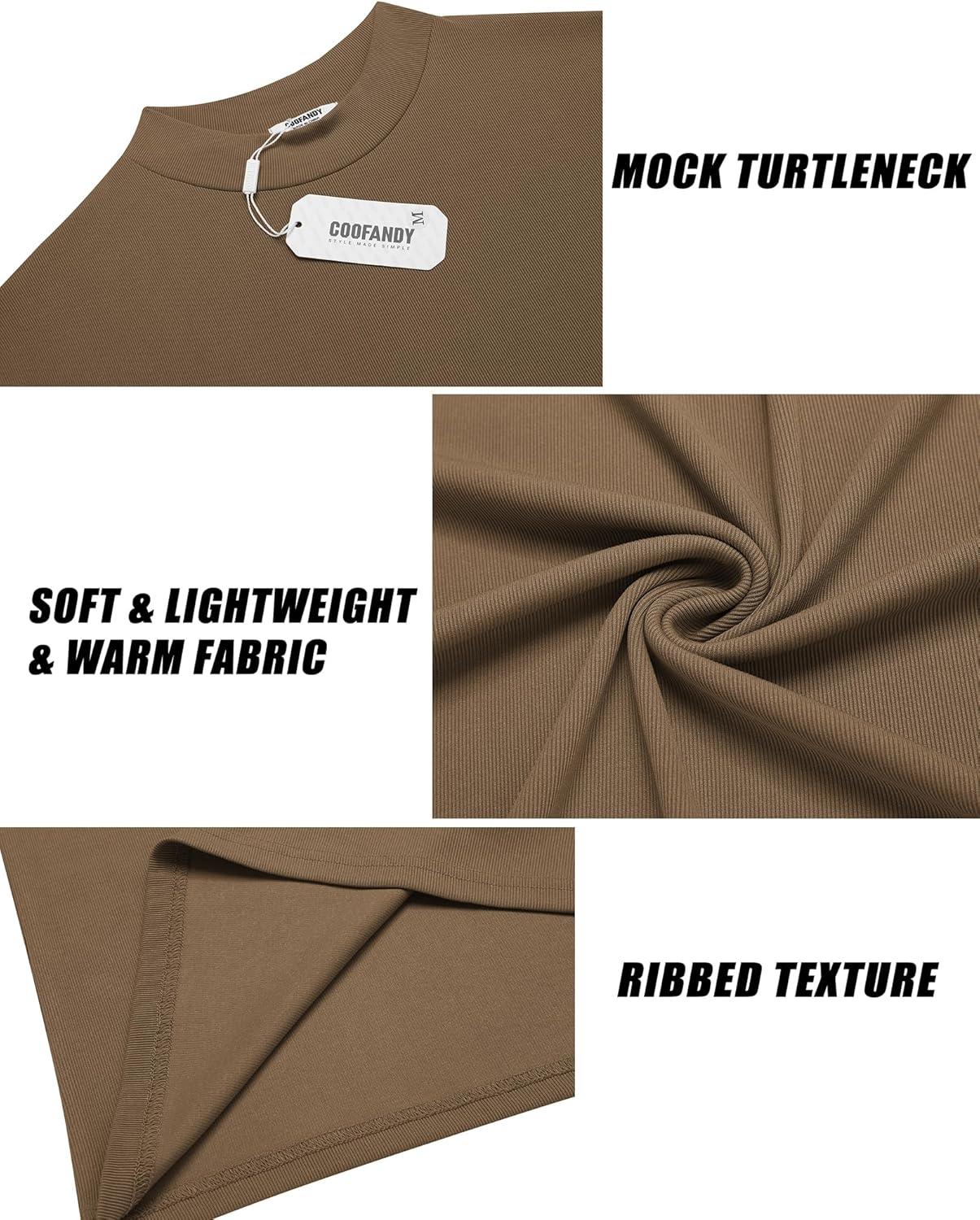 COOFANDY Men's Mock Turtleneck Long Sleeve Shirts Slim Fit Basic T-Shirt Lightweight Ribbed Pullover Sweater(2 Pack-black & Brown)