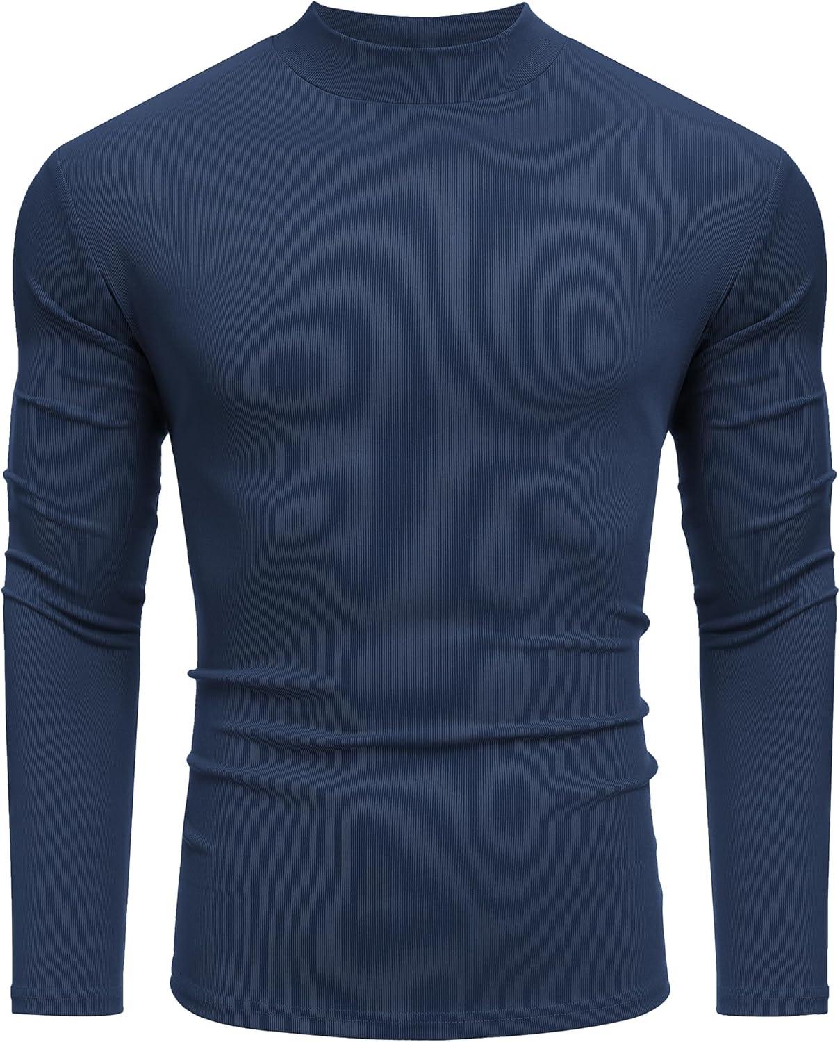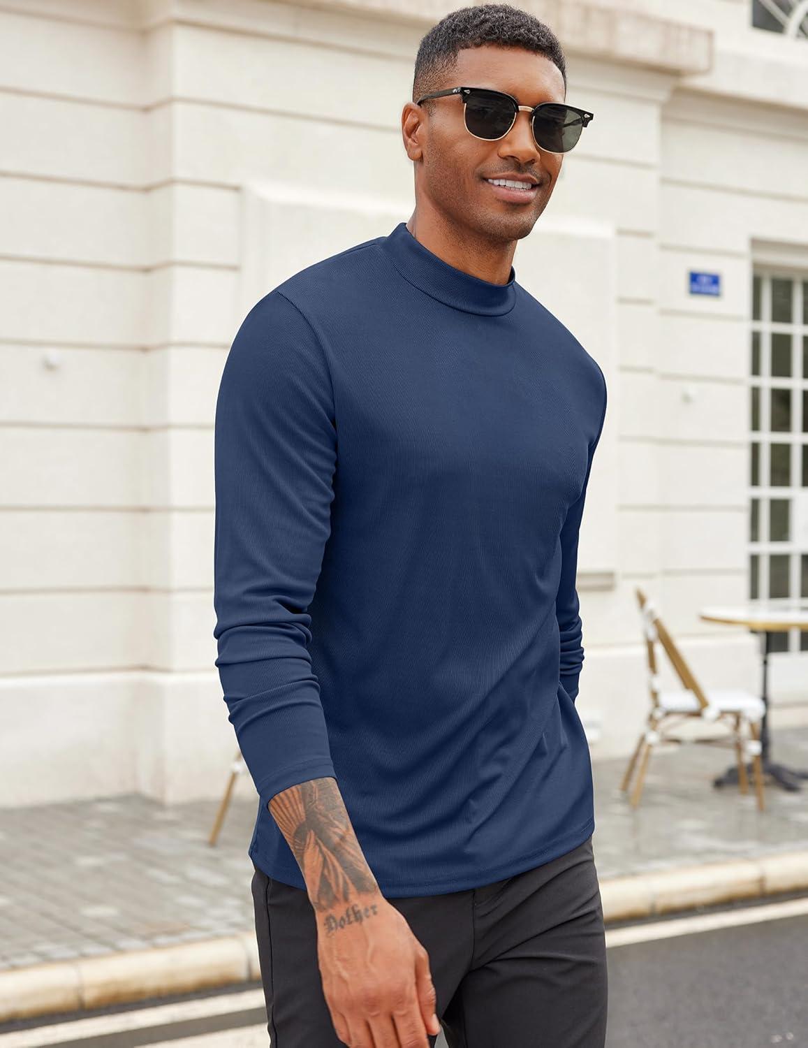 COOFANDY Men's Mock Turtleneck Long Sleeve Shirts Slim Fit Basic T-Shirt Lightweight Ribbed Pullover Sweater(2 Pack-black & Navy Blue)