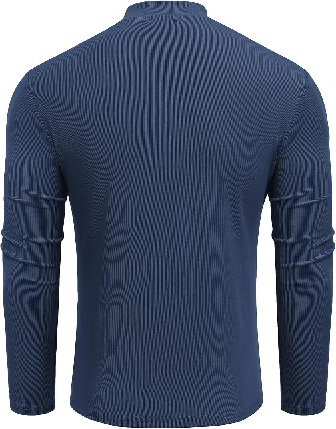 COOFANDY Men’s Mock Turtleneck Long Sleeve Shirts Slim Fit Basic T-Shirt Lightweight Ribbed Pullover Sweater(2 Pack-black & Navy Blue)