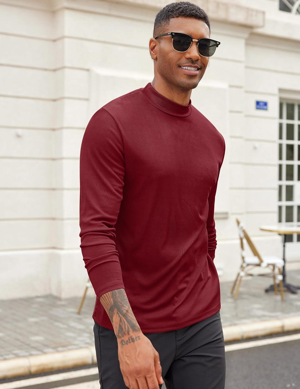 Get up to 70% off on COOFANDY Men’s Mock Turtleneck Long Sleeve Shirts Slim Fit Basic T-Shirt Lightweight Ribbed Pullover Sweater(2 Pack-black & Wine Red) styles during our end-of-season clearance event.