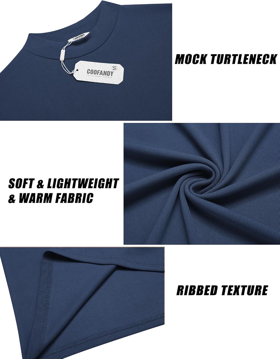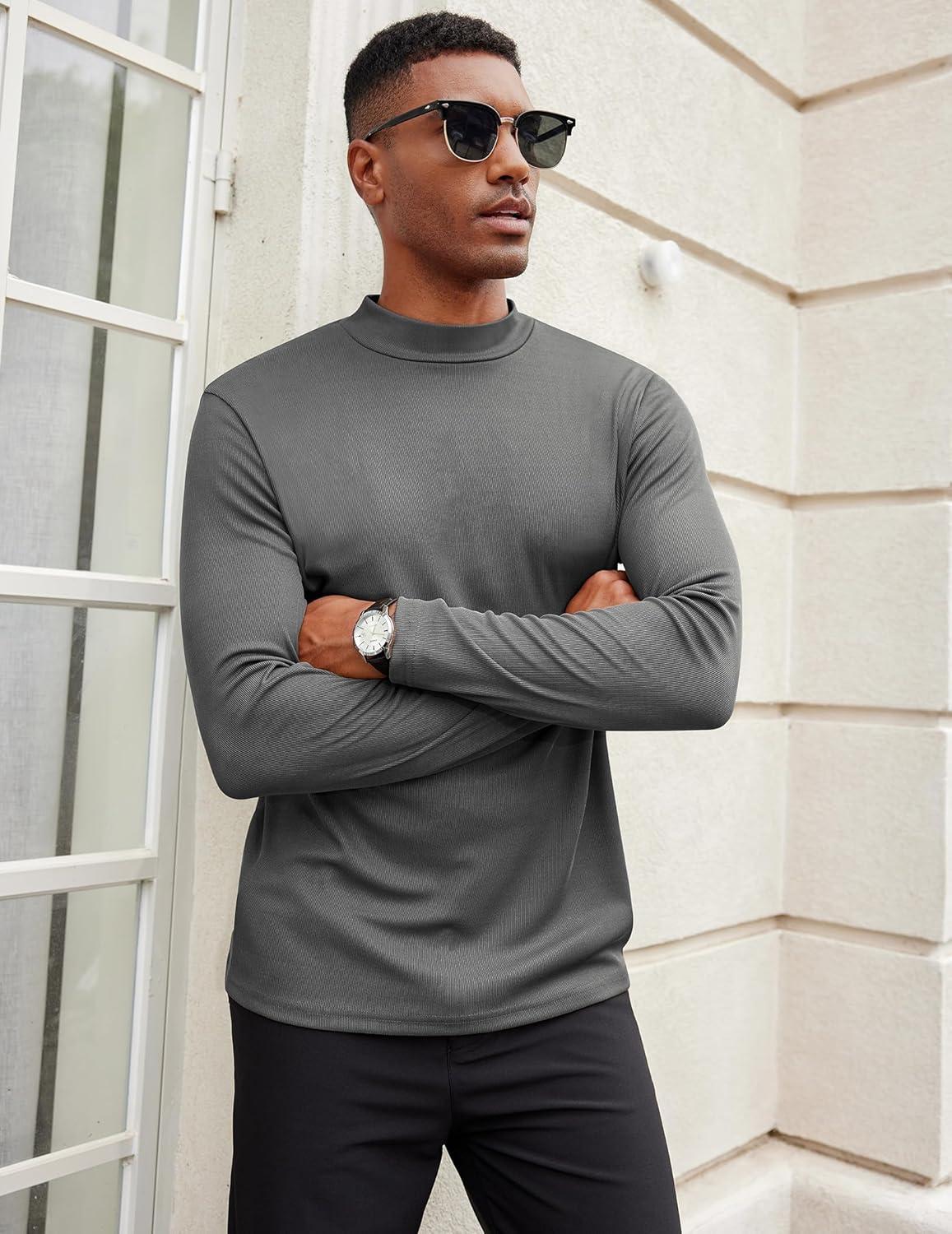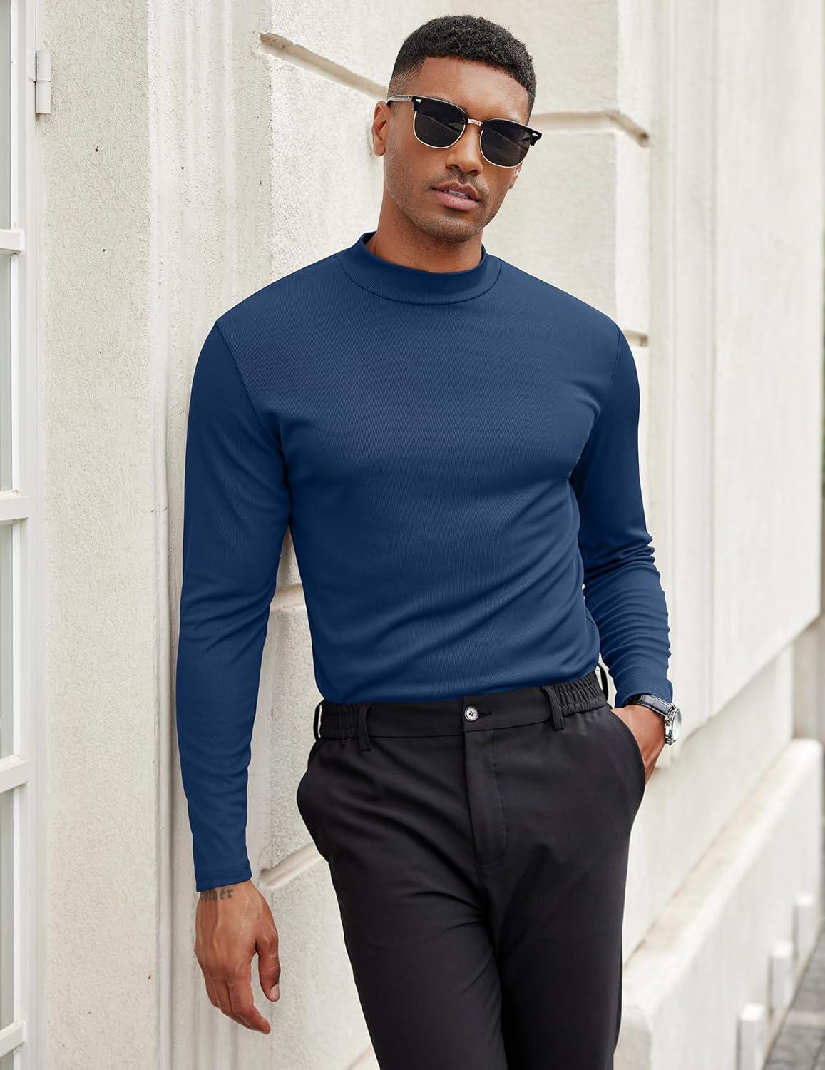 COOFANDY Men's Mock Turtleneck Long Sleeve Shirts Slim Fit Basic T-Shirt Lightweight Ribbed Pullover Sweater(2 Pack-dark Grey & Navy Blue)