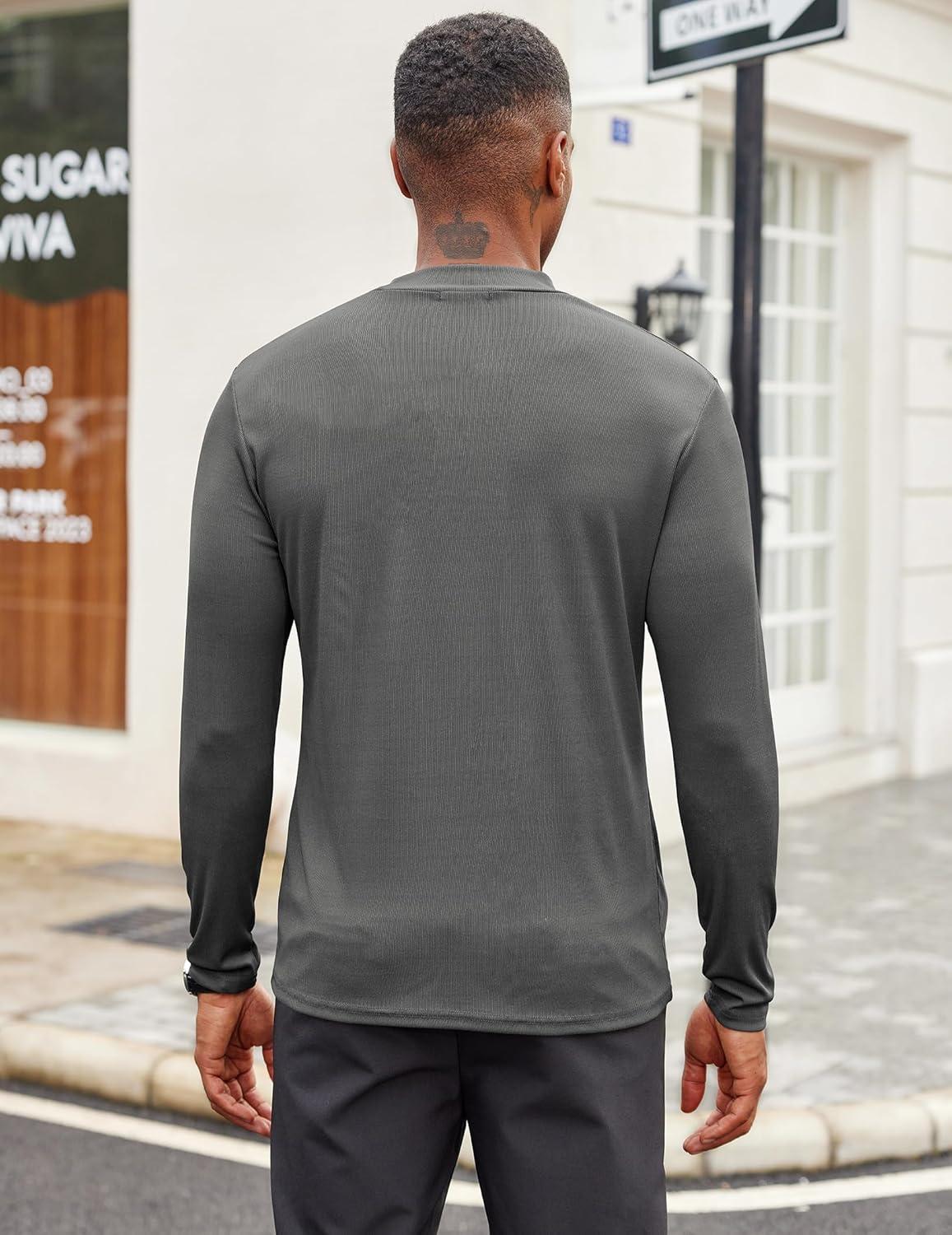 COOFANDY Men’s Mock Turtleneck Long Sleeve Shirts Slim Fit Basic T-Shirt Lightweight Ribbed Pullover Sweater(2 Pack-white & Dark Grey)