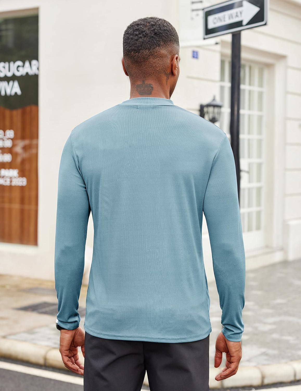 COOFANDY Men's Mock Turtleneck Long Sleeve Shirts Slim Fit Basic T-Shirt Lightweight Ribbed Pullover Sweater(Greenish Blue)