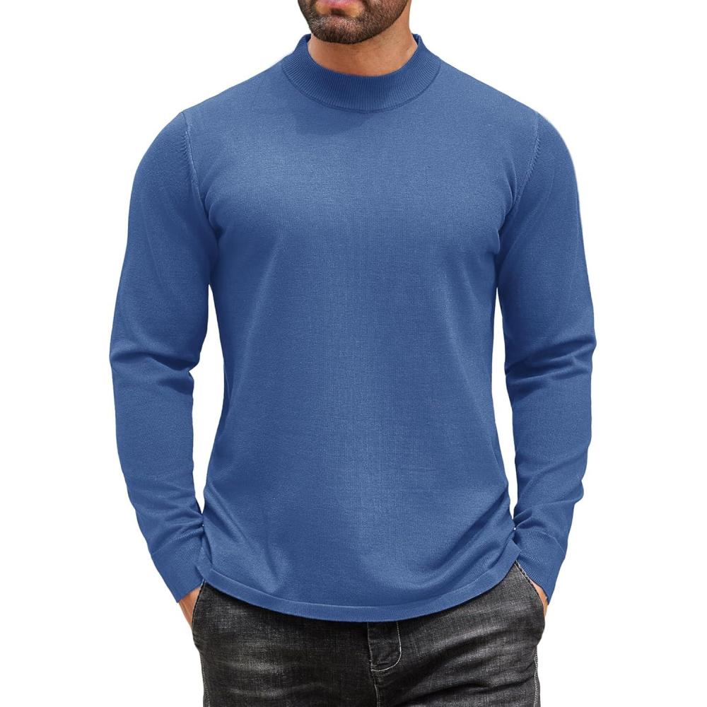 COOFANDY Men's Mock Turtleneck Long Sleeve T Shirts Basic Casual Knitted Half Neck Thermal Lightweight Pullover Sweater(Denim Blue)