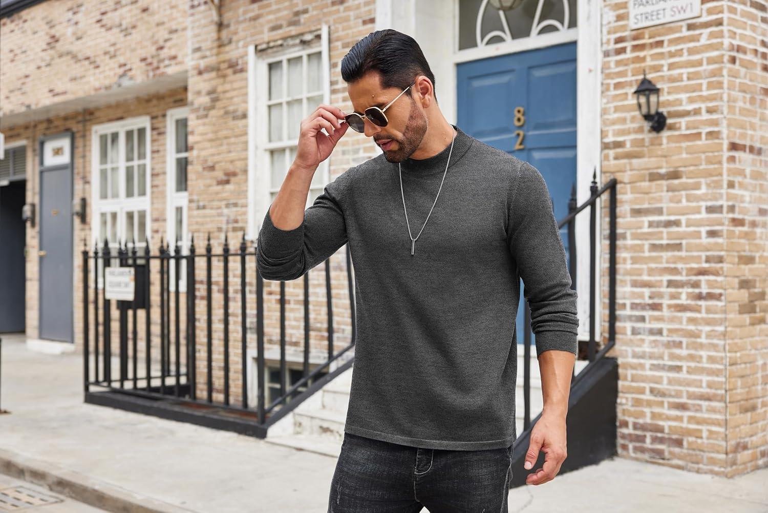 COOFANDY Men’s Mock Turtleneck Long Sleeve T Shirts Basic Casual Knitted Half Neck Thermal Lightweight Pullover Sweater(Grey)
